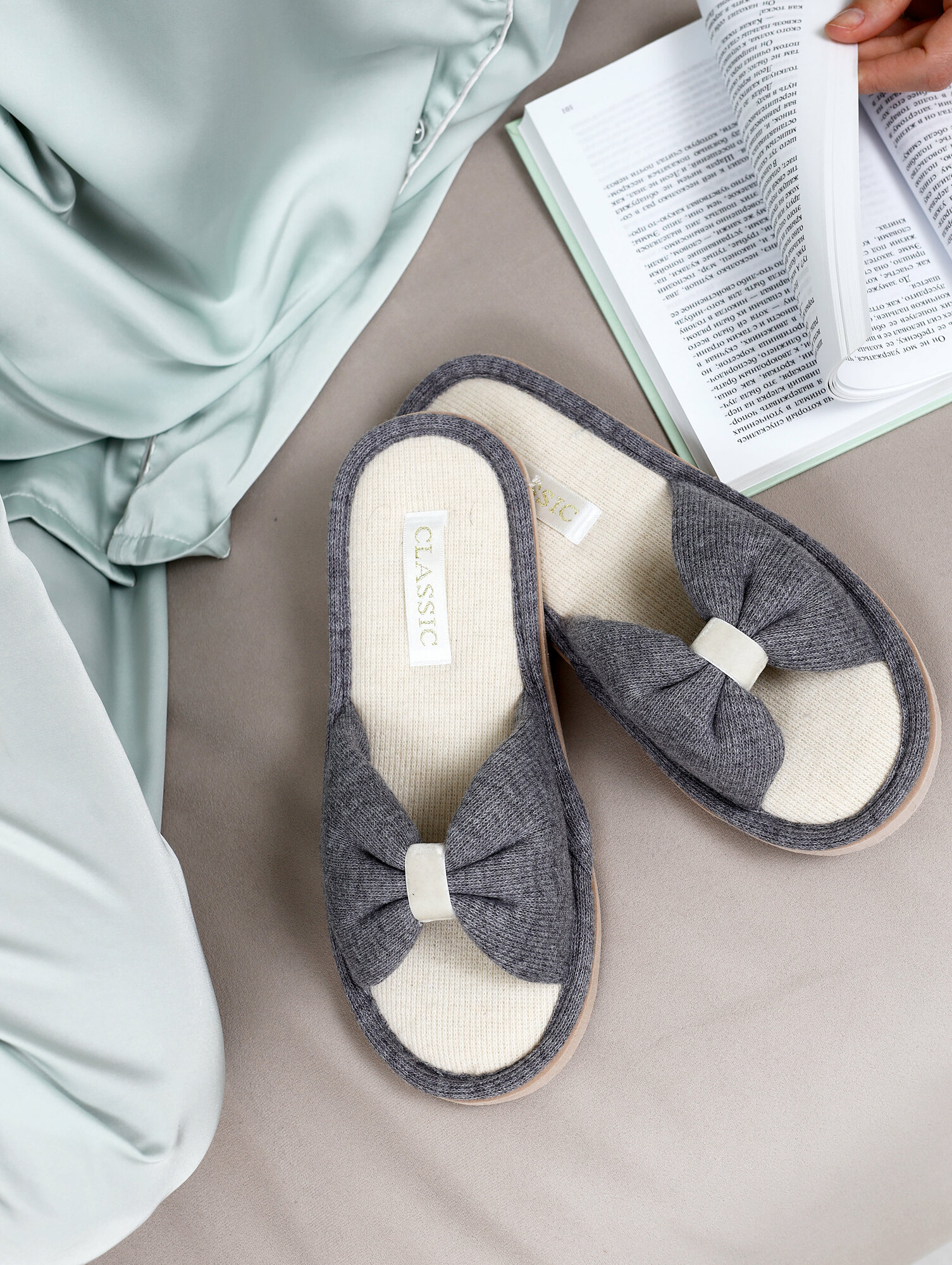 Тапочки ALBERY бантик, размер 40-41, серый интересное: