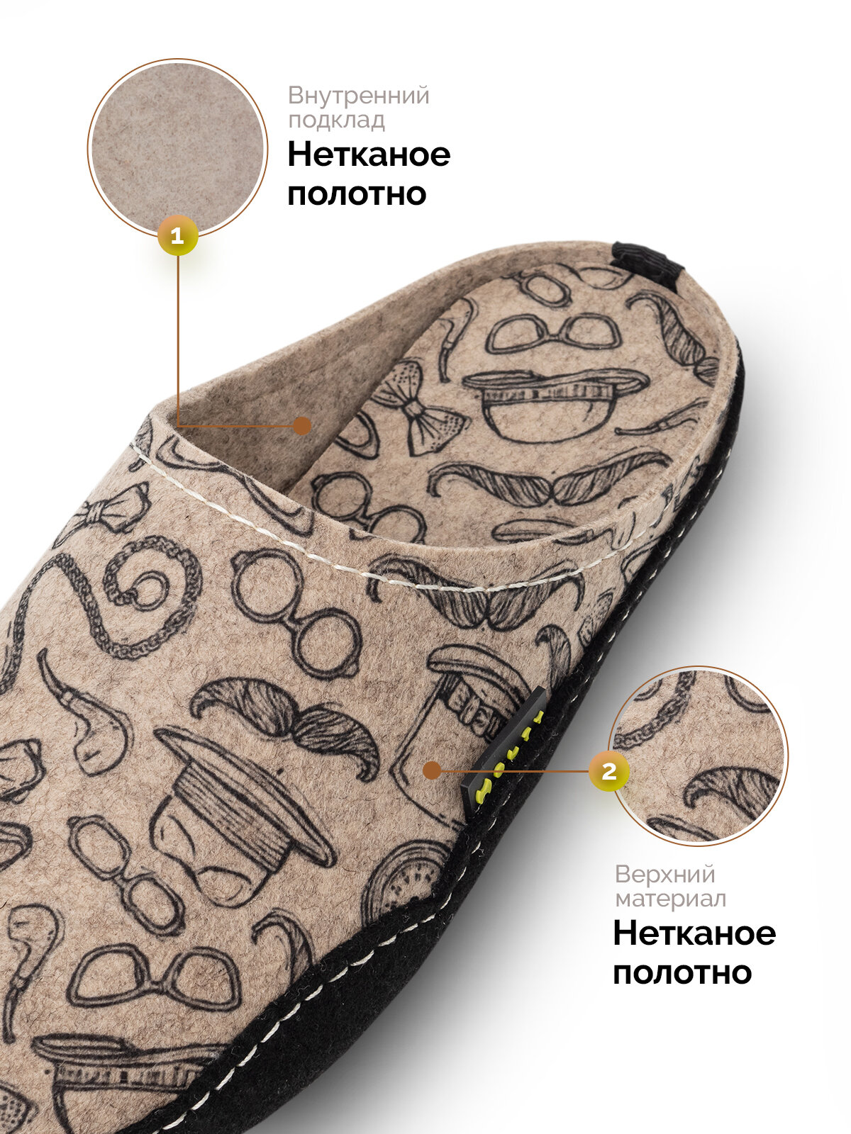 Тапочки войлочные Холти Онега Джентльмен теплые домашние мужские тапки из искусственного войлока (р. 46), светло-коричневый