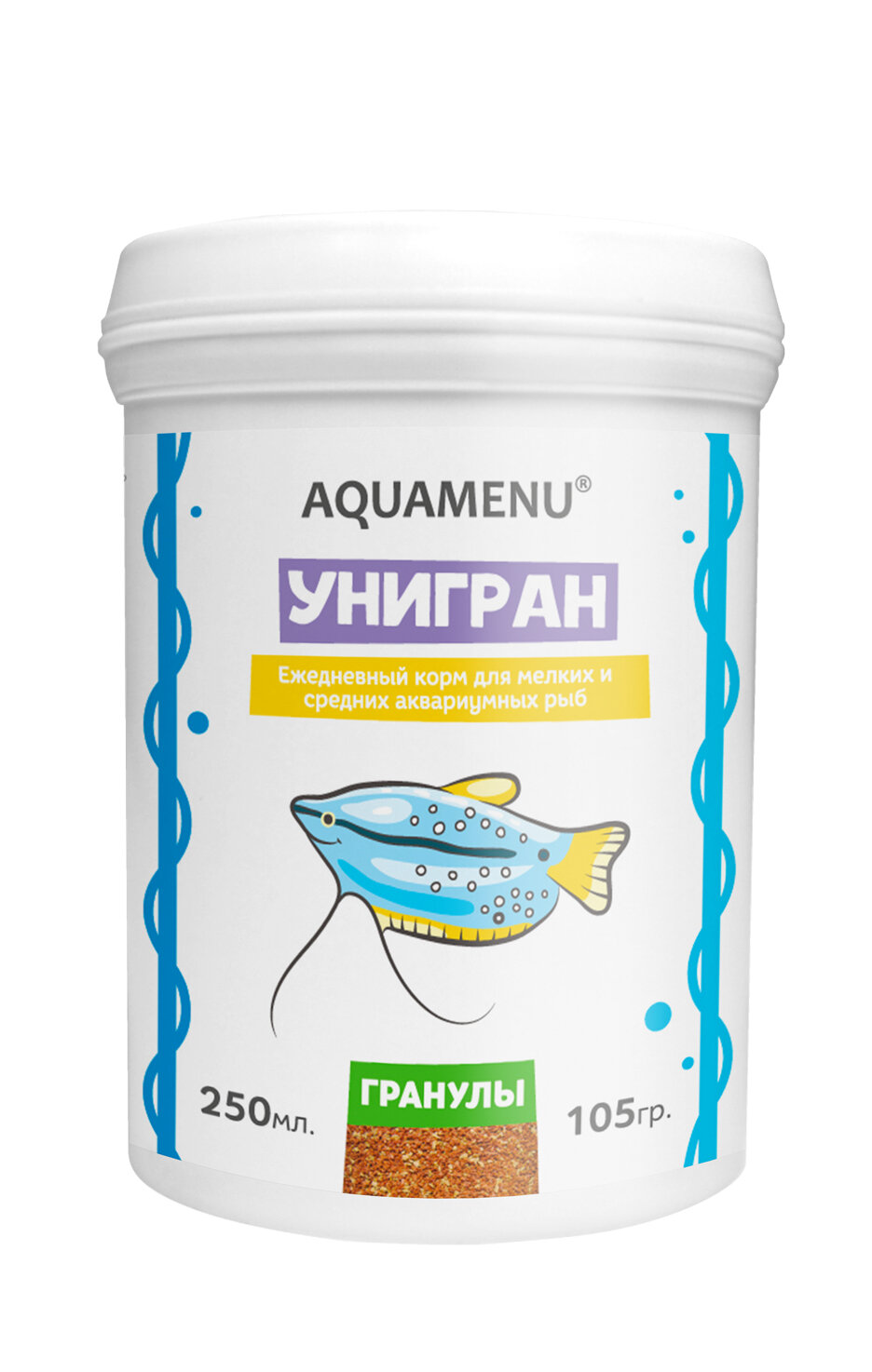Корм ежедневный Aquamenu Унигран 250 мл, гранулы для мелких и средних аквариумных рыб .