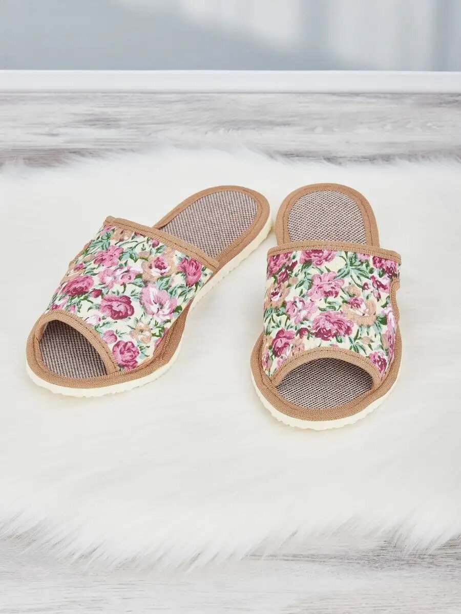 Тапочки LepiloV, размер 41, бордовый, розовый, бежевый