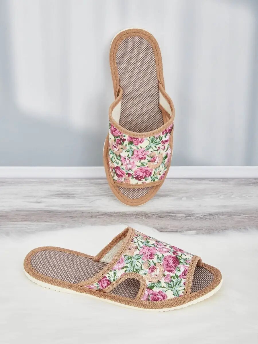 Тапочки LepiloV, размер 38, бордовый, розовый, бежевый