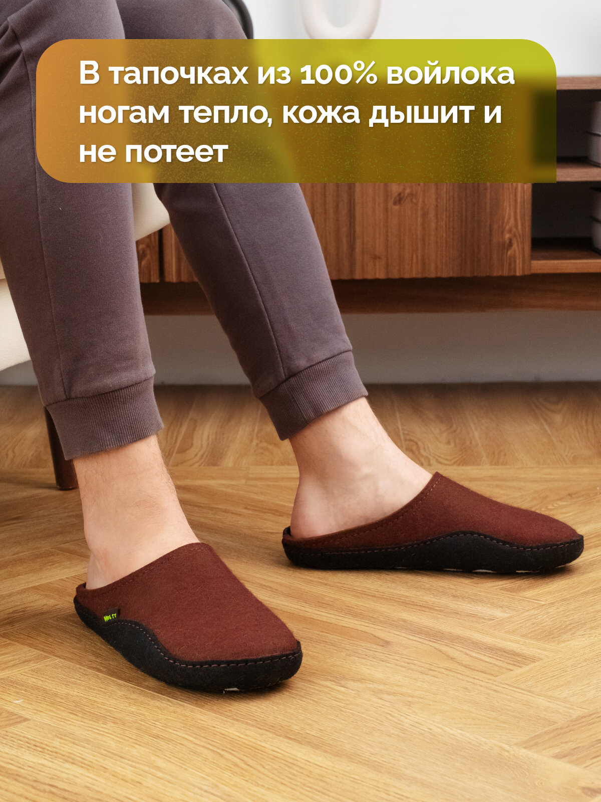 Тапочки войлочные Холти "Дудинка" теплые домашние мужские тапки из натурального войлока (р. 41), коричневый