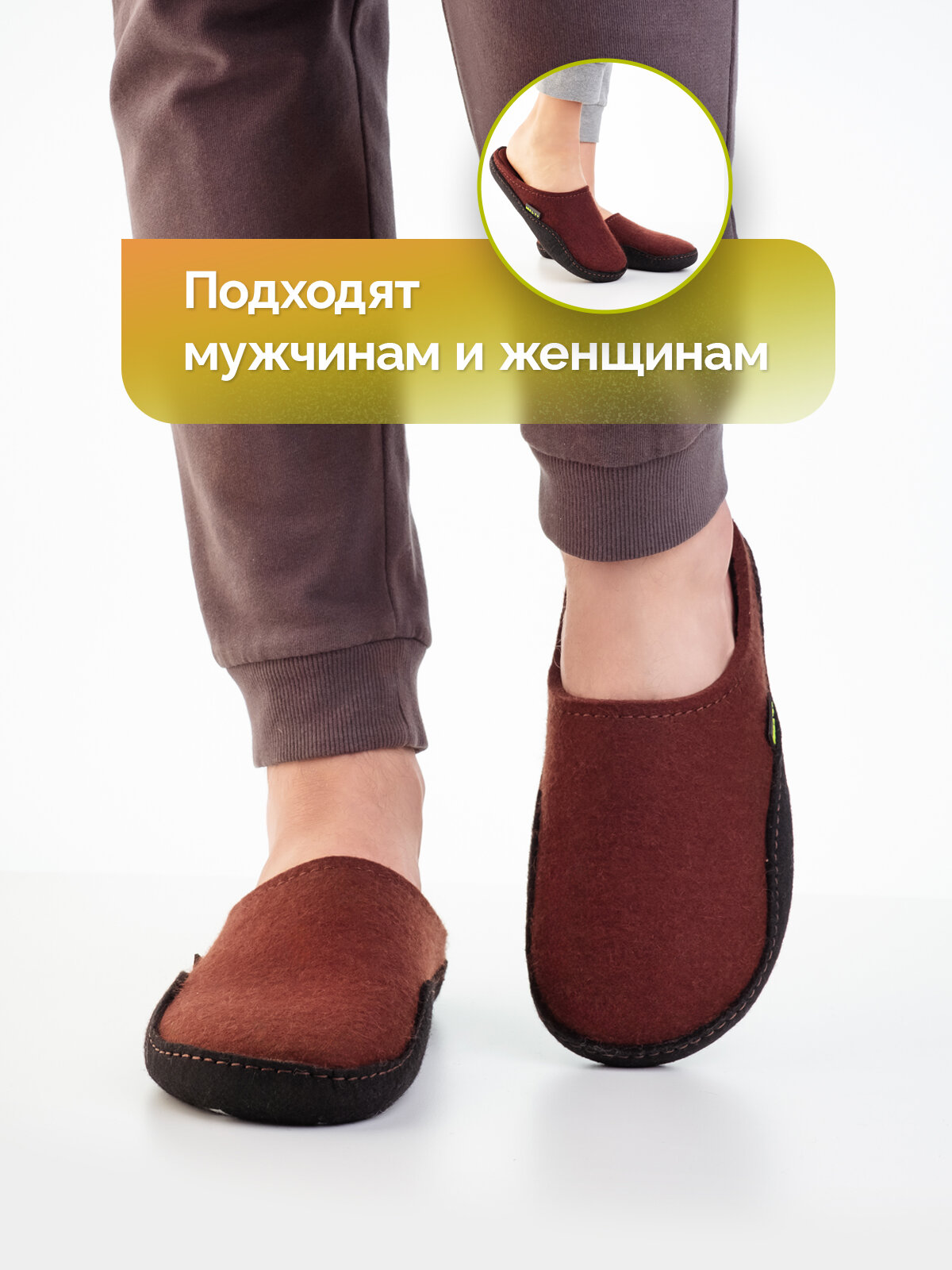 Тапочки войлочные Холти "Дудинка" теплые домашние мужские тапки из натурального войлока (р. 41), терракотовый