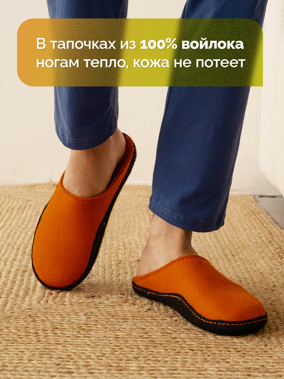 Мужские тапочки войлочные Холти "Дудинка" теплые домашние мужские тапки из натурального войлока (р. 43), оранжевый
