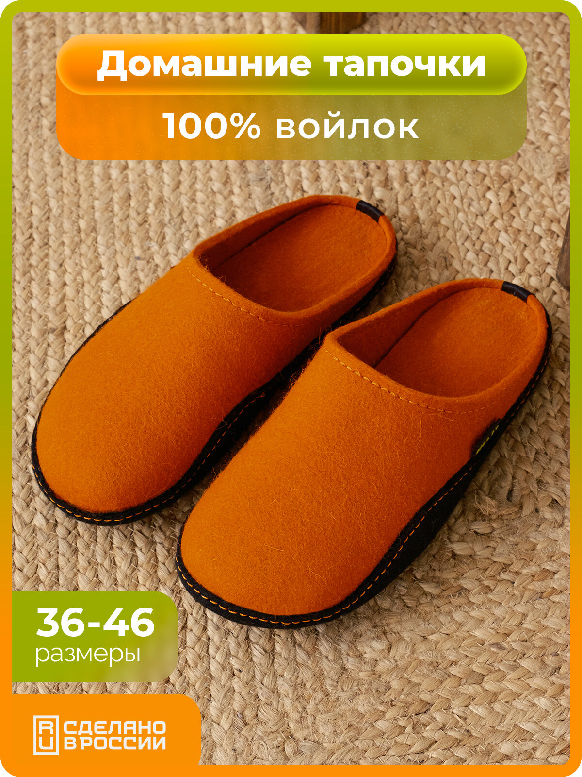 Тапочки войлочные Холти "Дудинка" теплые домашние женские тапки из натурального войлока (р. 37), оранжевый