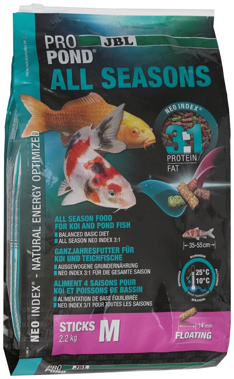 Купить JBL ProPond All Seasons M - Осн всесез корм д/кои 35-55 см, плав палоч 14 мм, 2,2кг/12л