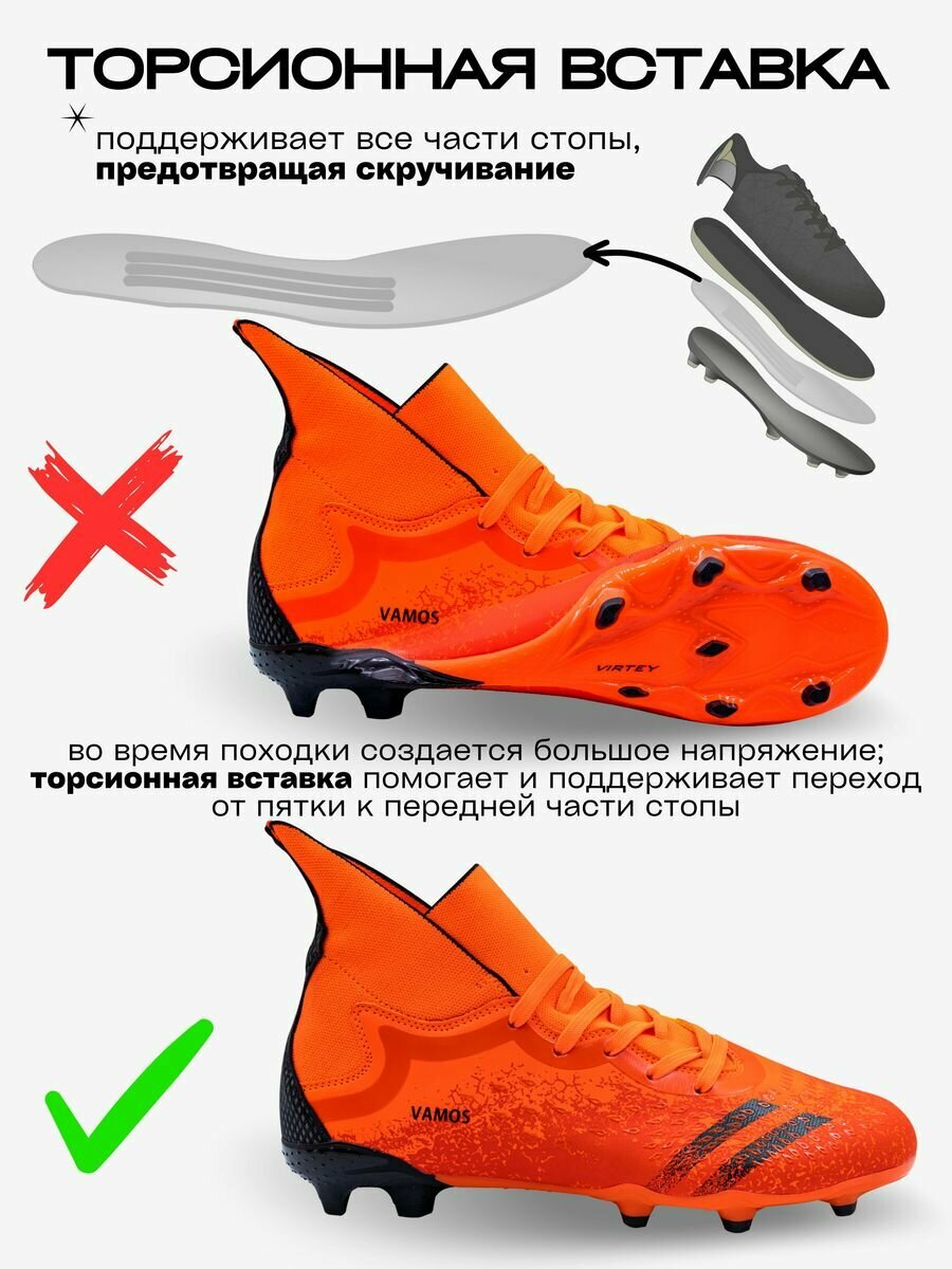 Бутсы Virtey 21093 VAMOS р.42 чёрный/оранжевый
