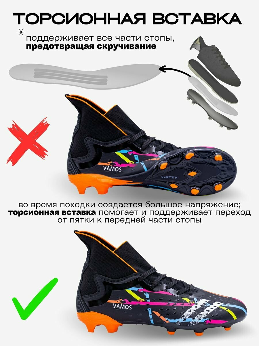 Бутсы Virtey 21093 VAMOS р.42 чёрный/оранжевый