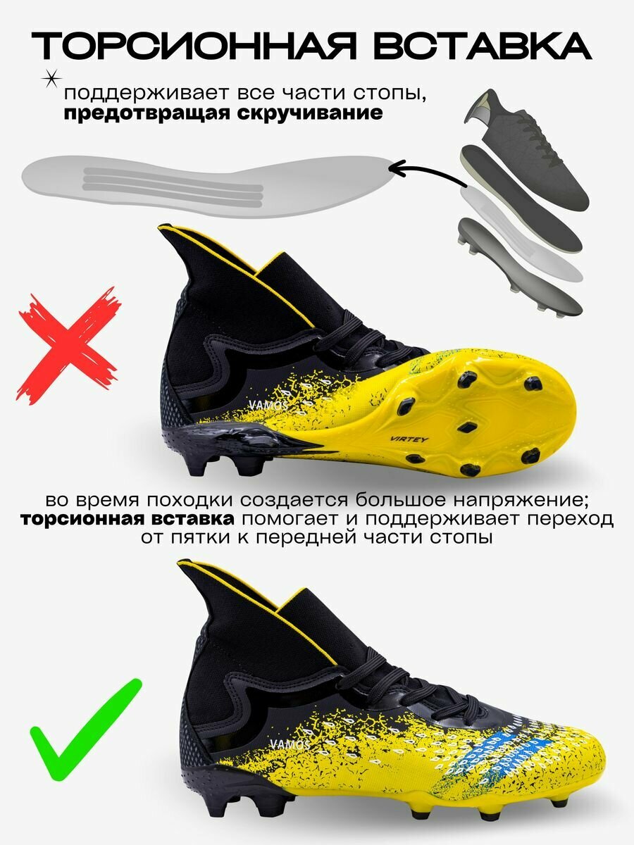 Бутсы Virtey, размер 41, черный/желтый