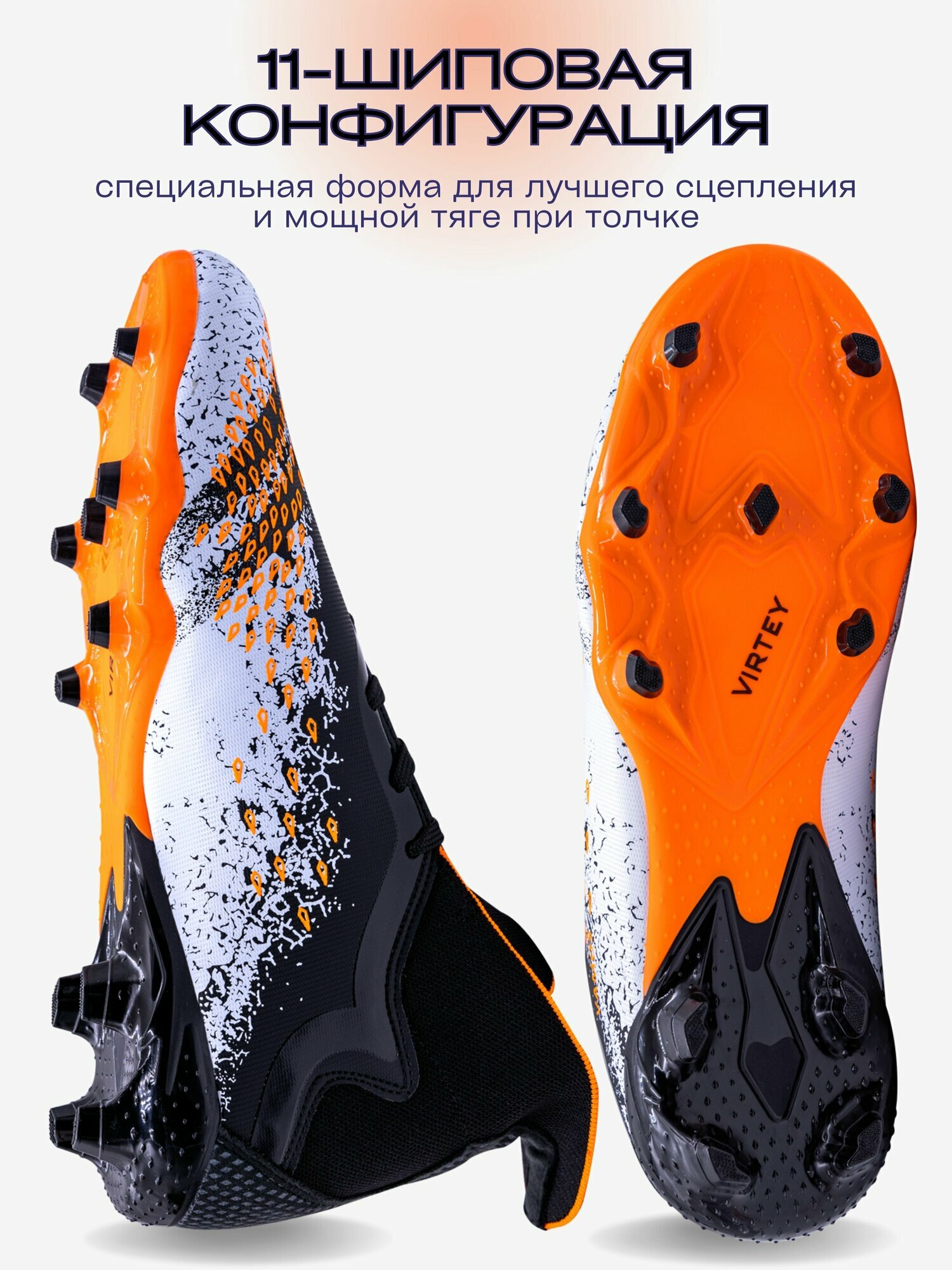 Бутсы Virtey, размер 42, черный/оранжевый