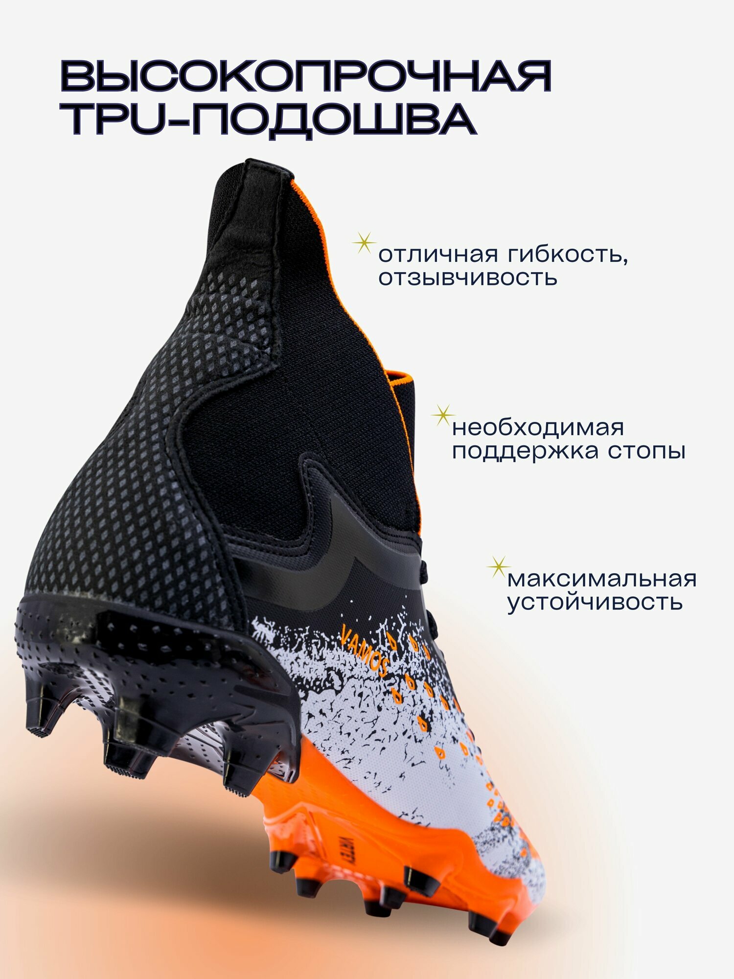 Бутсы Virtey 21093 VAMOS р.42 чёрный/оранжевый