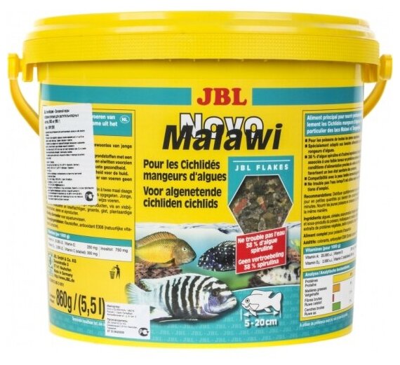 Купить JBL NovoMalawi - Основной корм в форме хлопьев для растительноядных цихлид, 5500 мл (860 г)