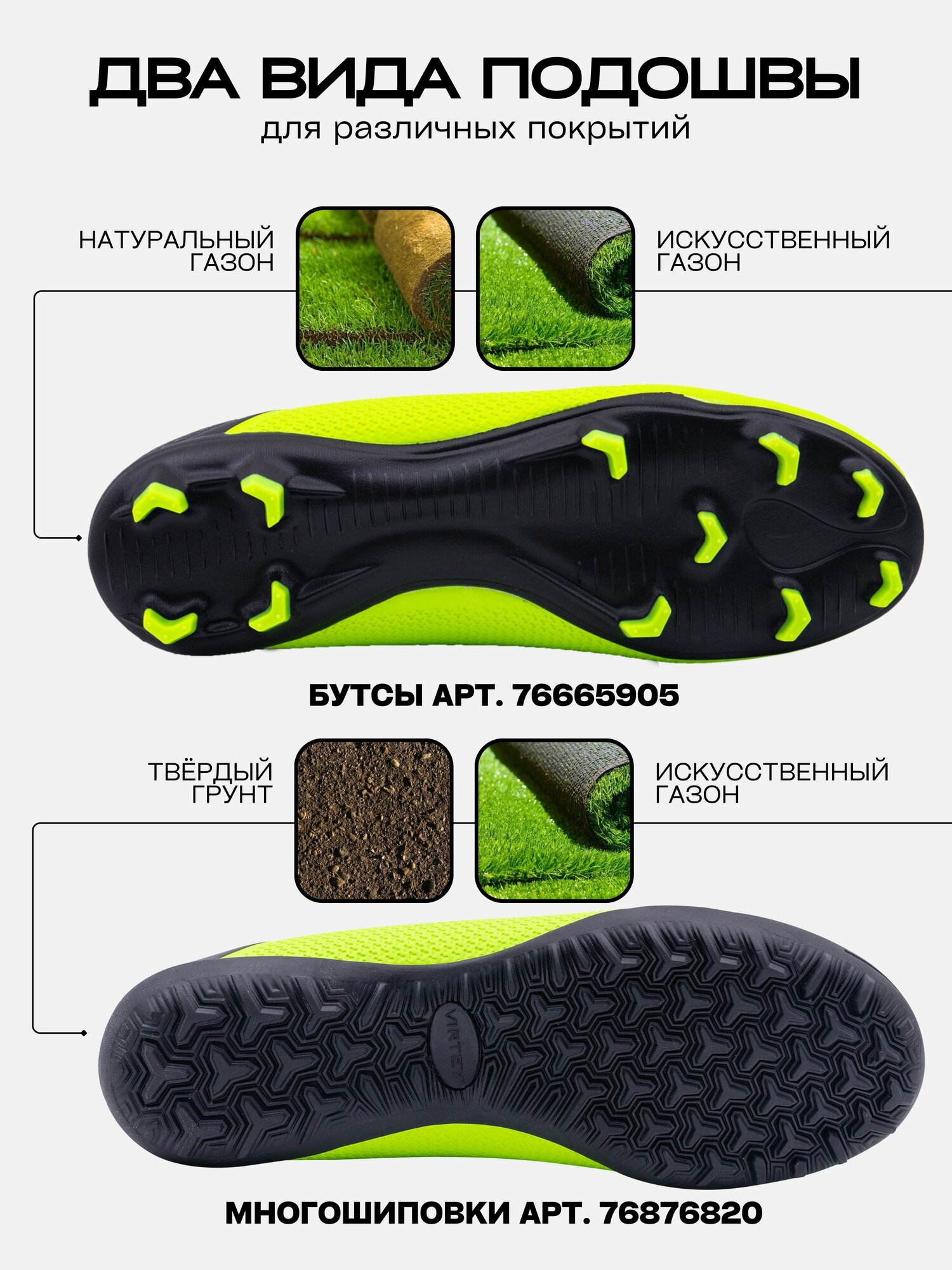Бутсы Virtey, размер 42, черный/зеленый