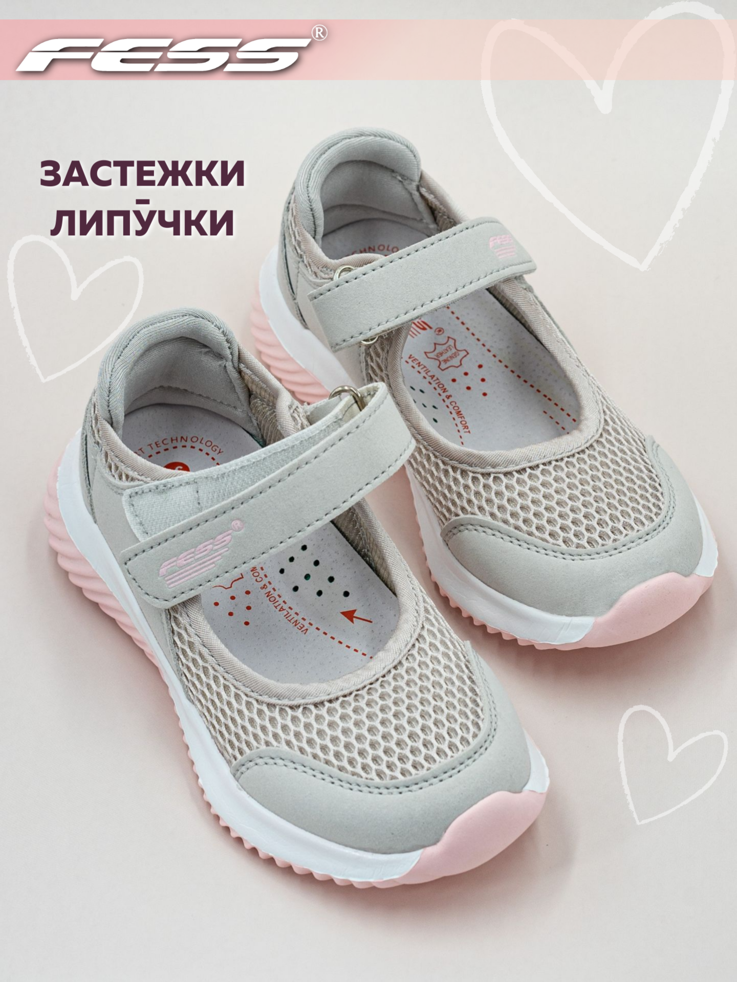 Туфли школьные для девочек FESS текстильные на сменку