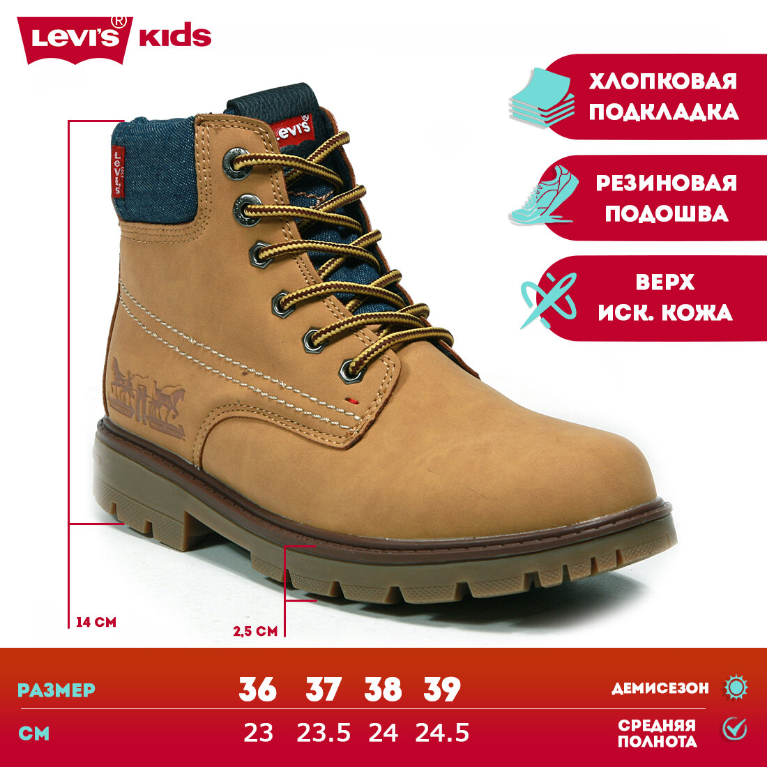 Ботинки Levi's, размер 36, желтый интересное: