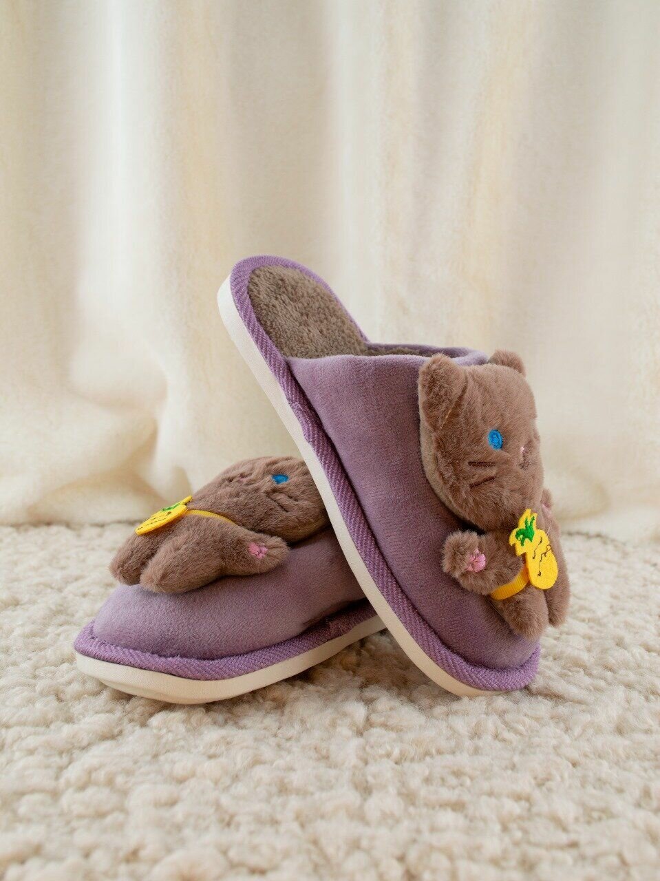 Закрытые меховые домашние детские тапочки Cute cats, размер /33-34/, сиреневые