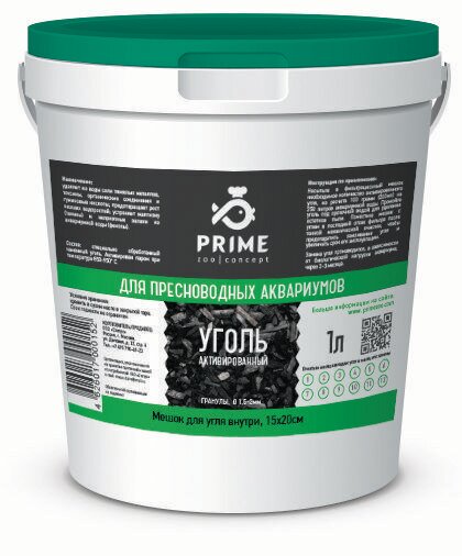 Уголь Prime для пресноводных аквариумов, Активированный 1 литр