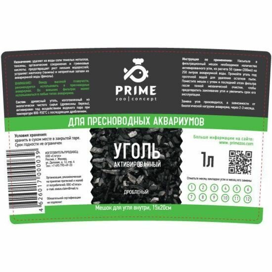Уголь Prime для пресноводных аквариумов, Активированный 1 литр интересное: