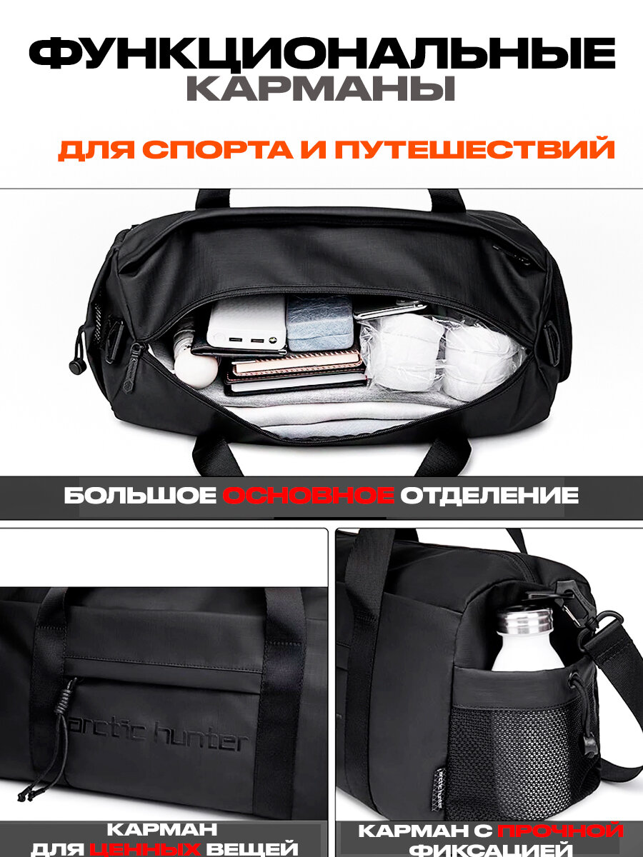 Сумка спортивная Arctic Hunter, 25 л, 16х32х48.5 см, ручная кладь, черный интересное: