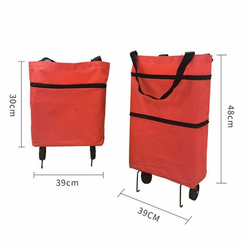 Сумка на колесах хозяйственная складная оранжевая / без подклада / с расширением
