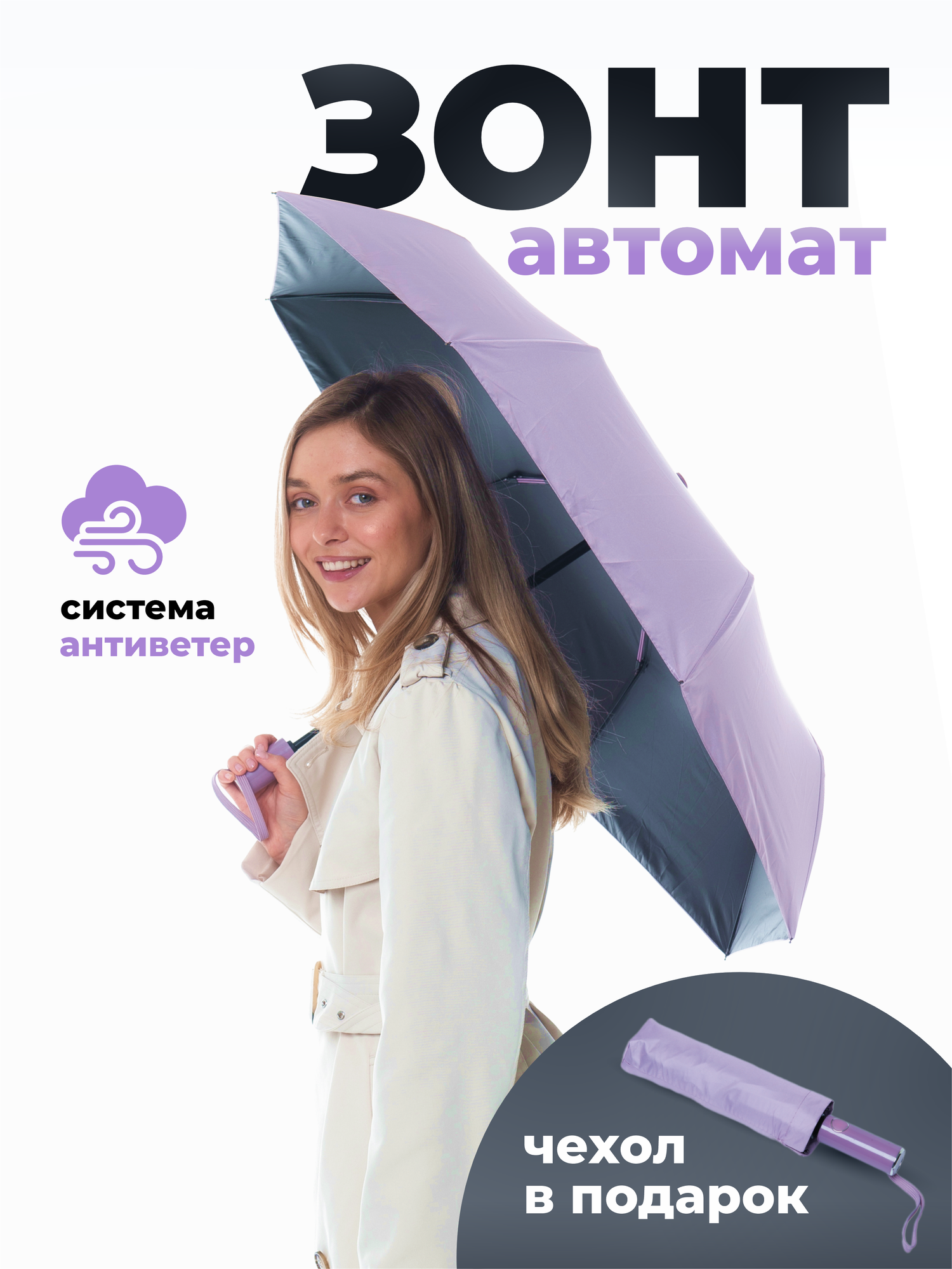 Зонт женский автомат / зонт женский автоматический складной фиолетовый