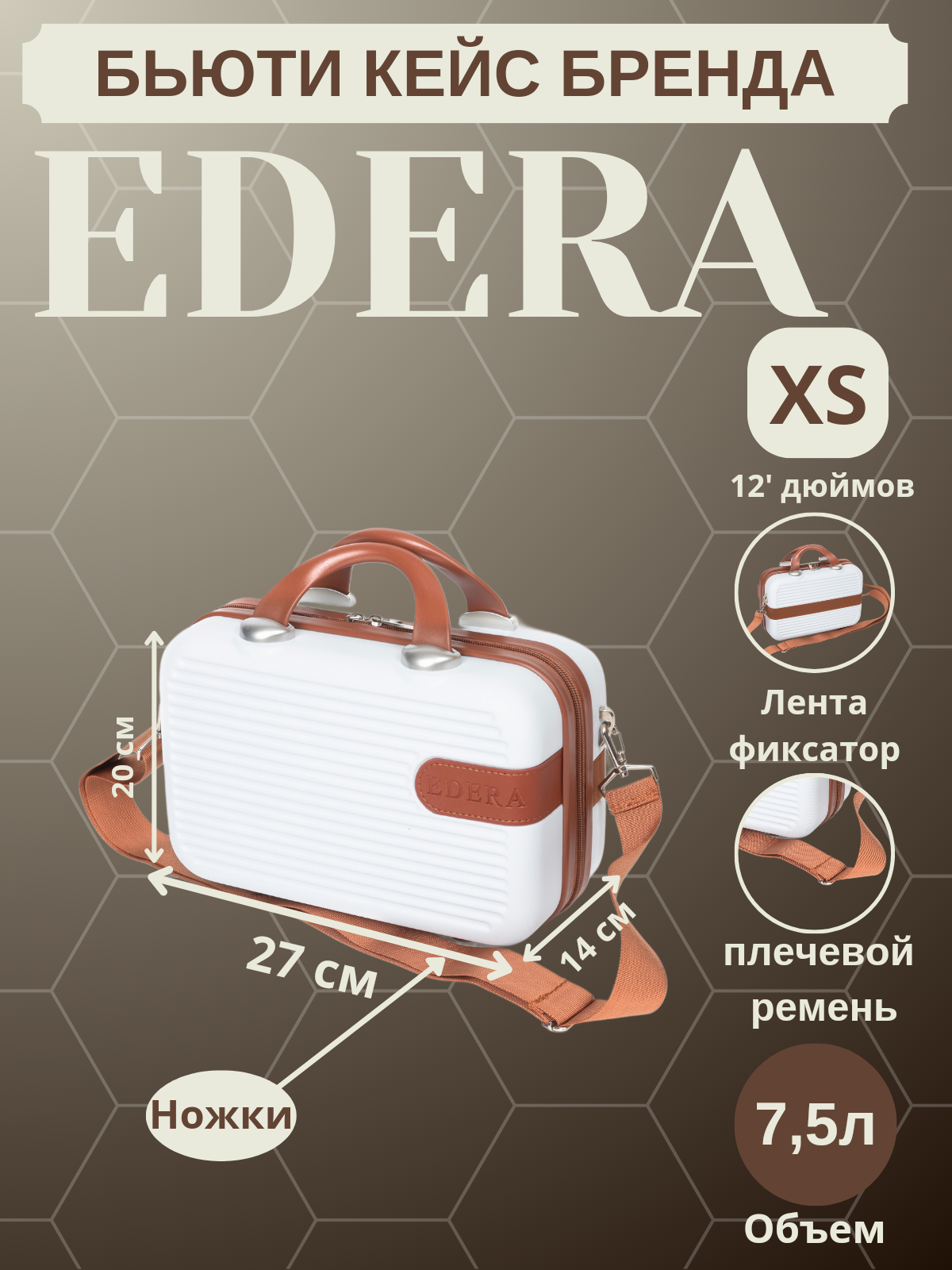 Бьюти-кейс EDERA, 14х20х27 см, , белый интересное: