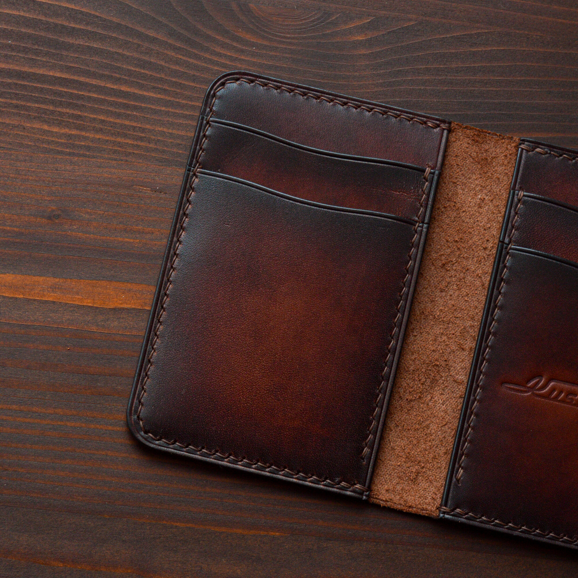 Картхолдер из натуральной кожи ручной работы Орех / Кожаный мини кошелек для мужчины и женщины. Цвет коричневый