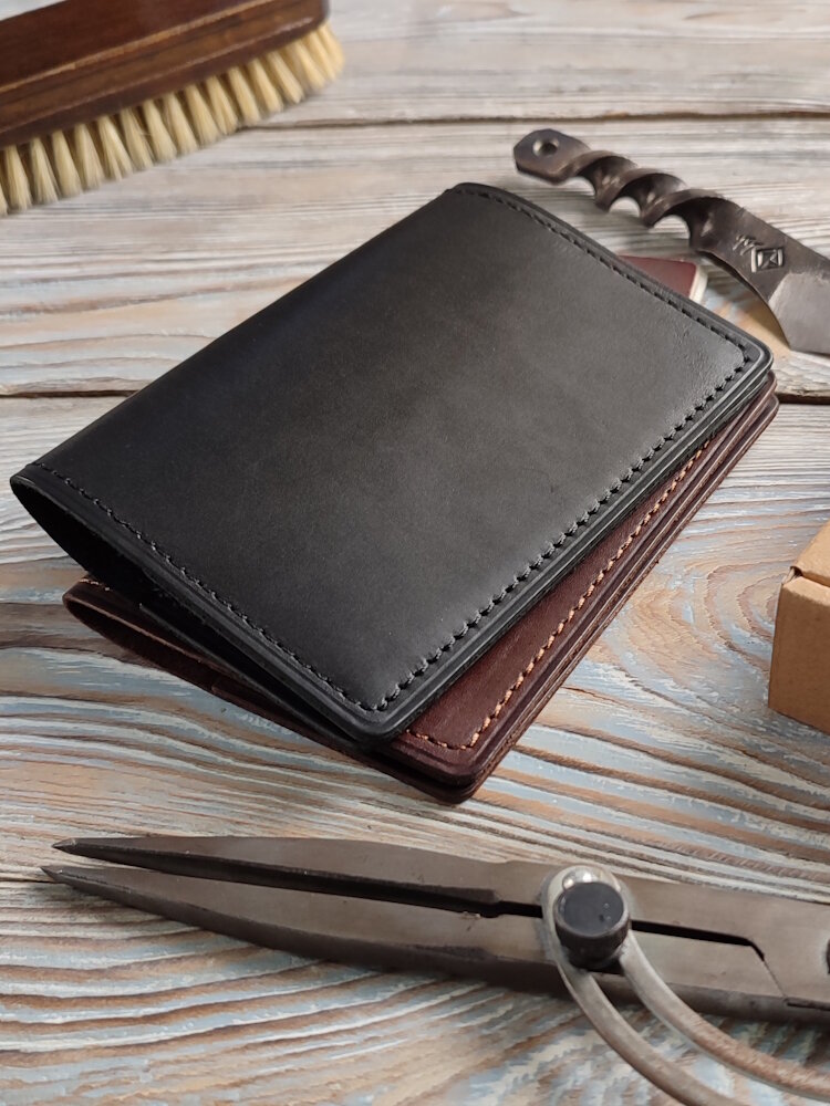 Обложка для паспорта из натуральной кожи ручной работы чёрная