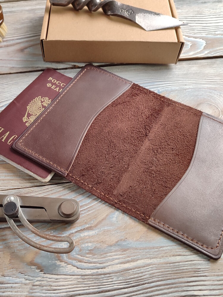 Обложка для паспорта из натуральной кожи ручной работы коричневая