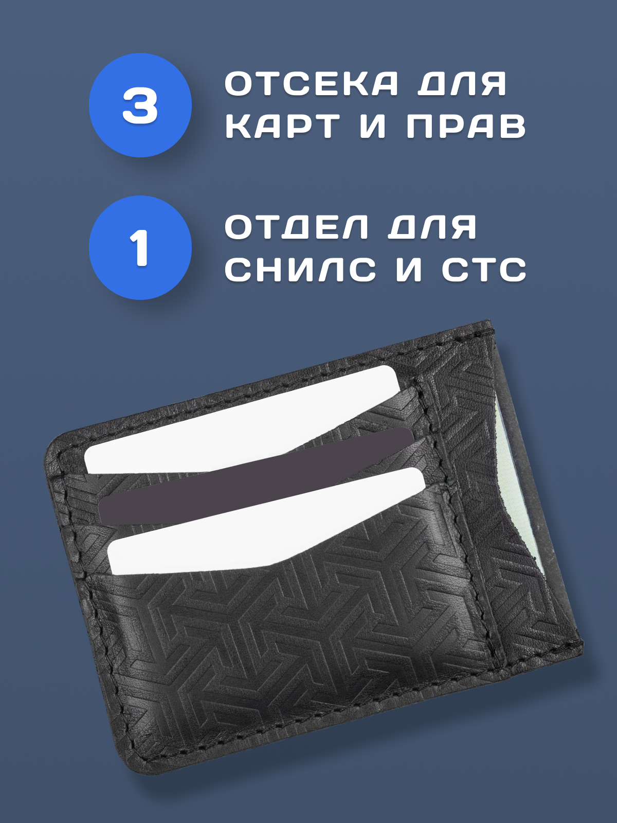 Кожаный картхолдер для автодокументов и карт с тиснением, черный