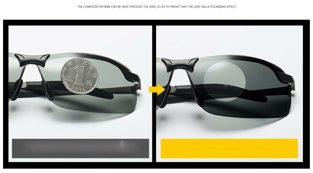 Фотохромные поляризованные солнцезащитные очки без оправы для дневного и ночного вождения - черные