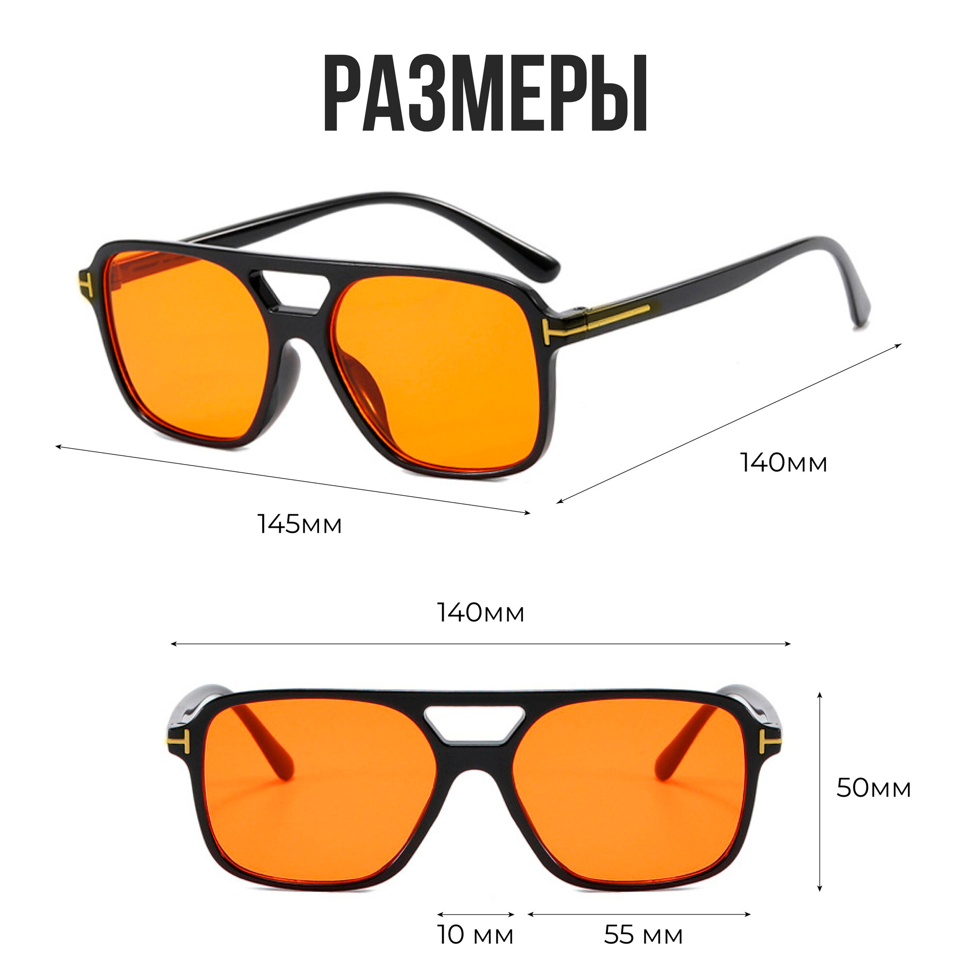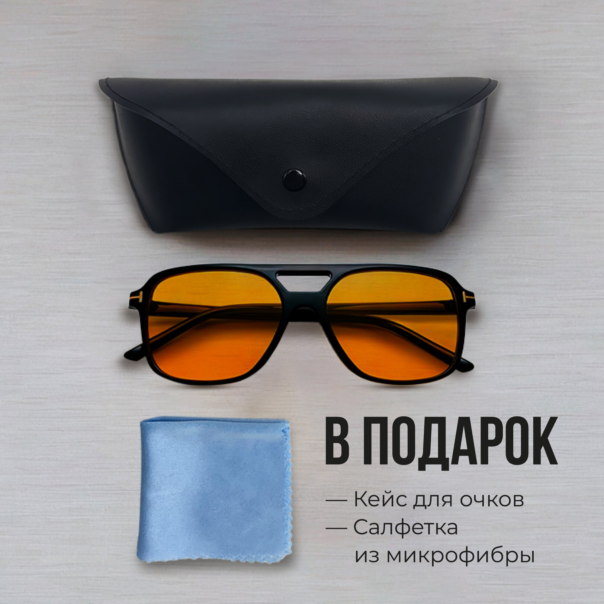 Квадратные солнцезащитные очки с чехлом и салфеткой в комплекте