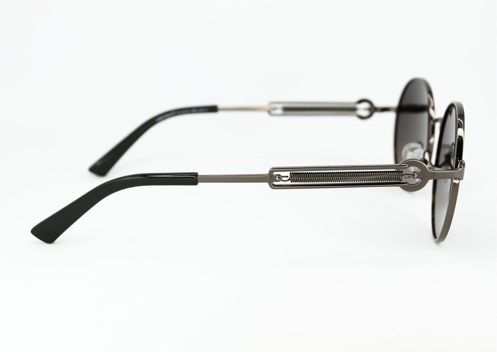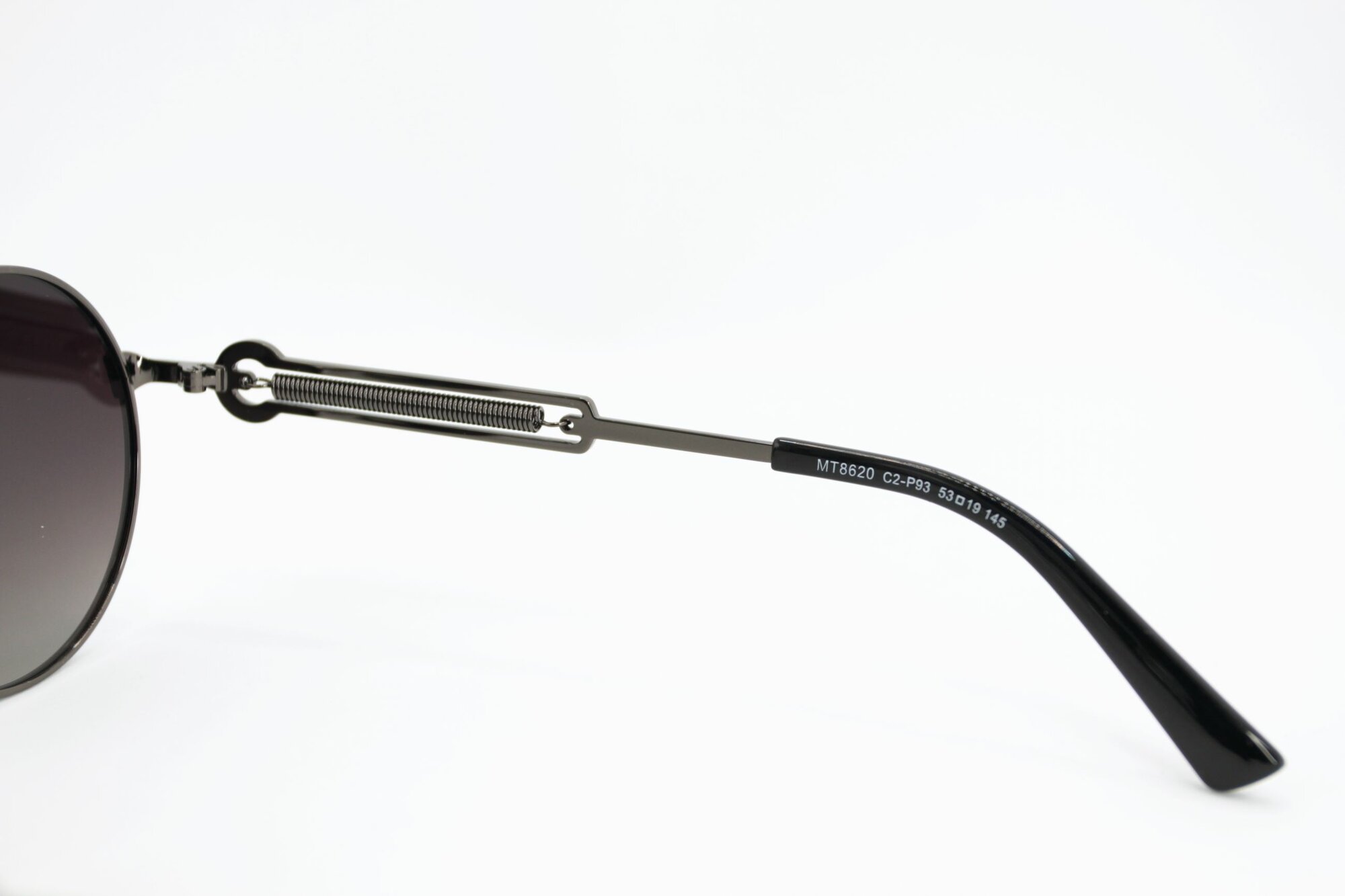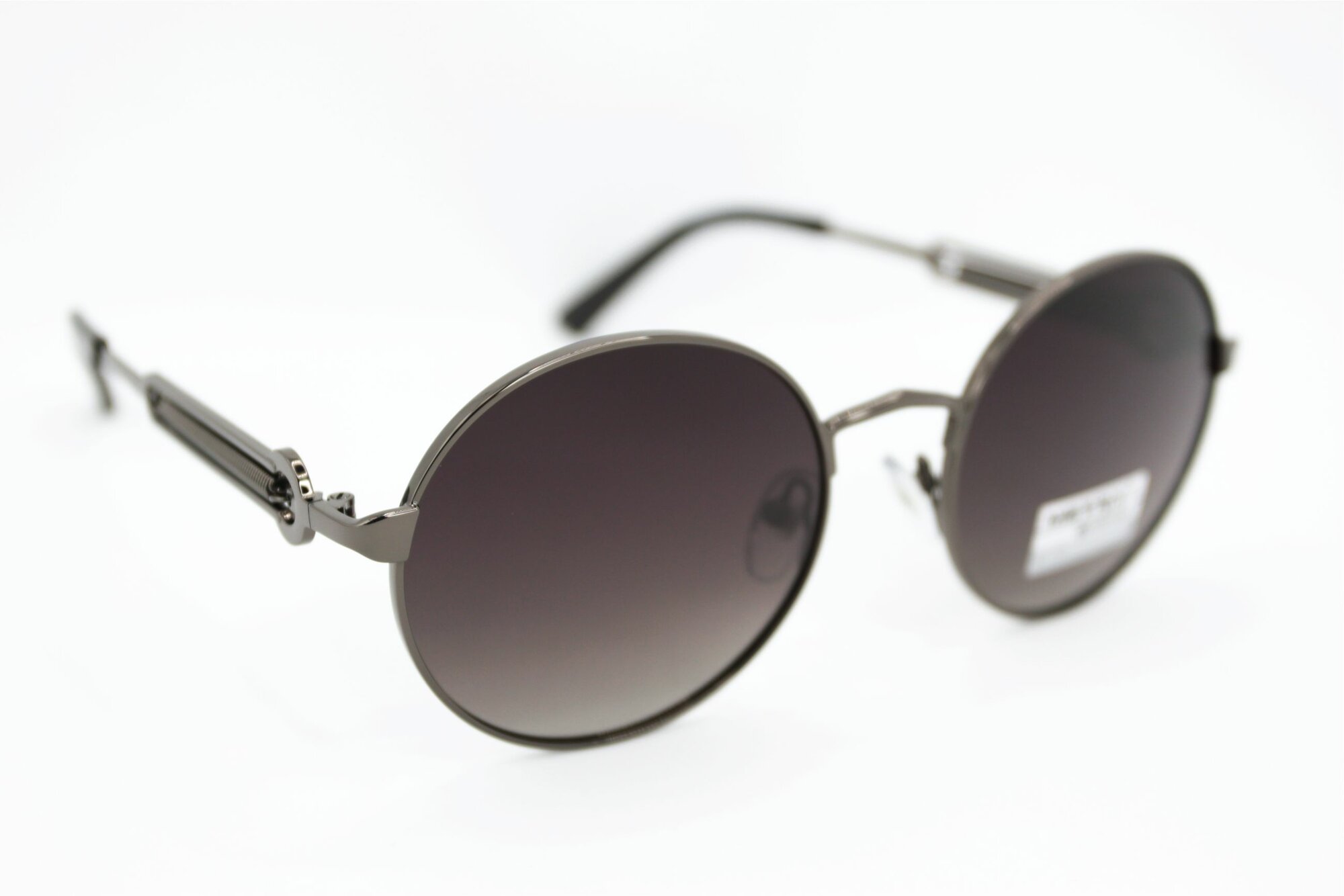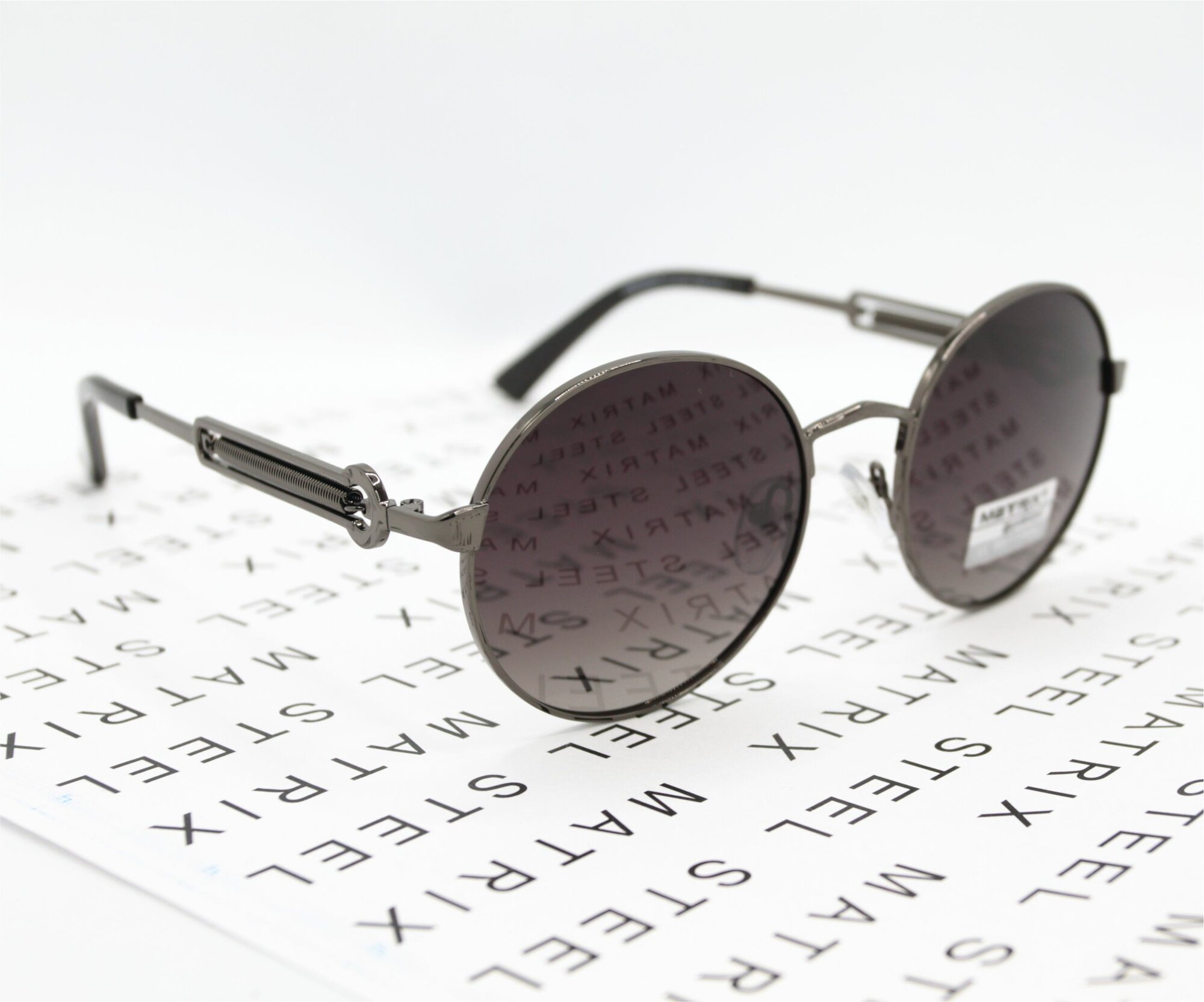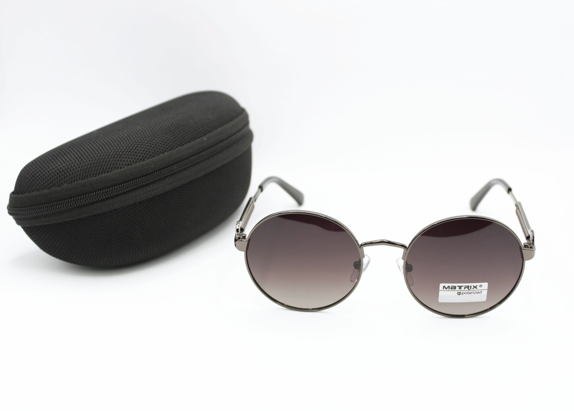 Очки солнцезащитные MATRIX (МТ8620 C97-P55) круглые, тишейды, стимпанк, оправа и дужки серый металл, линзы градиент: чернильно-черный в серый, поляризация, UV-защита cat.3, на дужках вставки с пружинками + мягкий чехол +жесткий футляр и салфетка в подарок