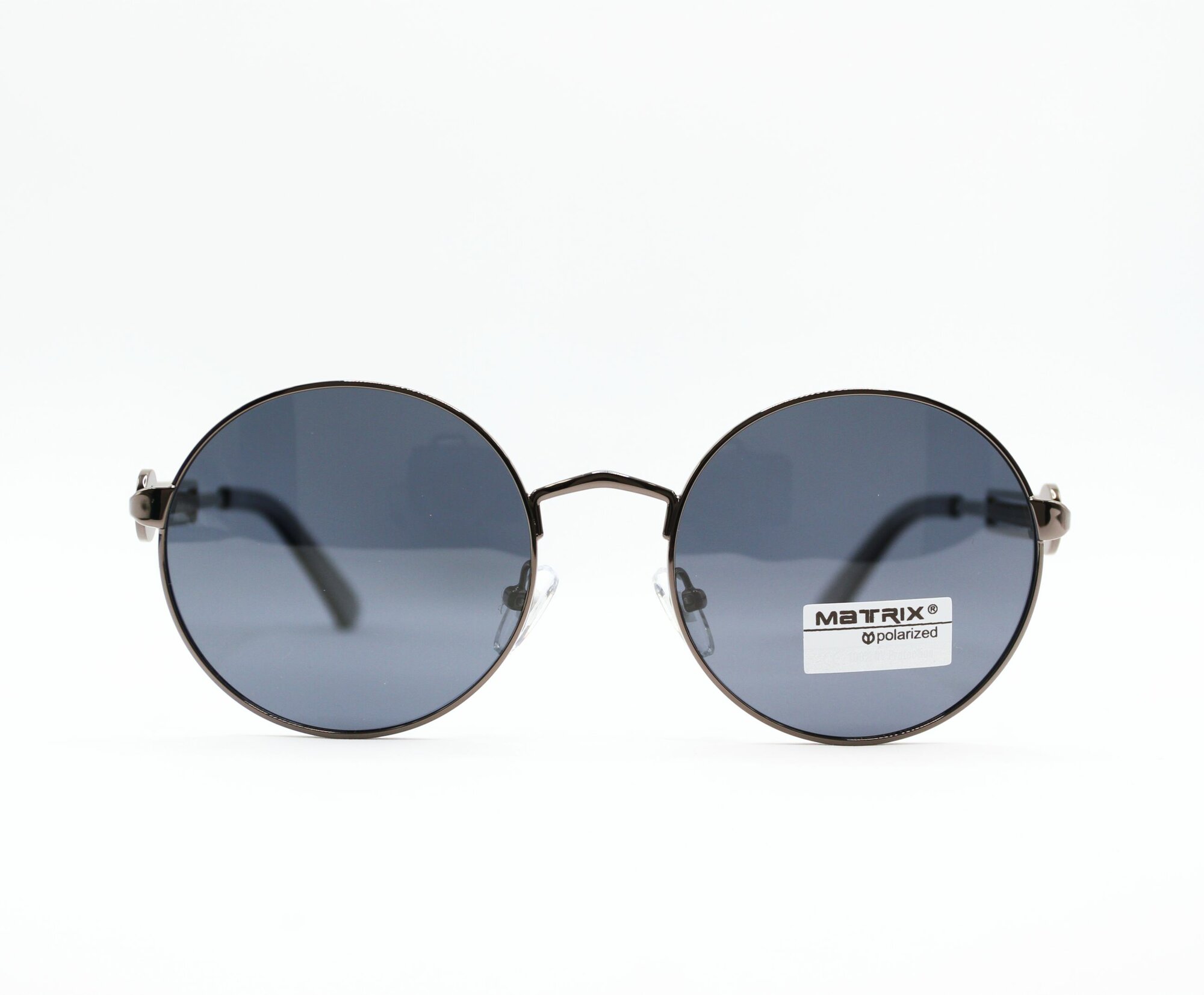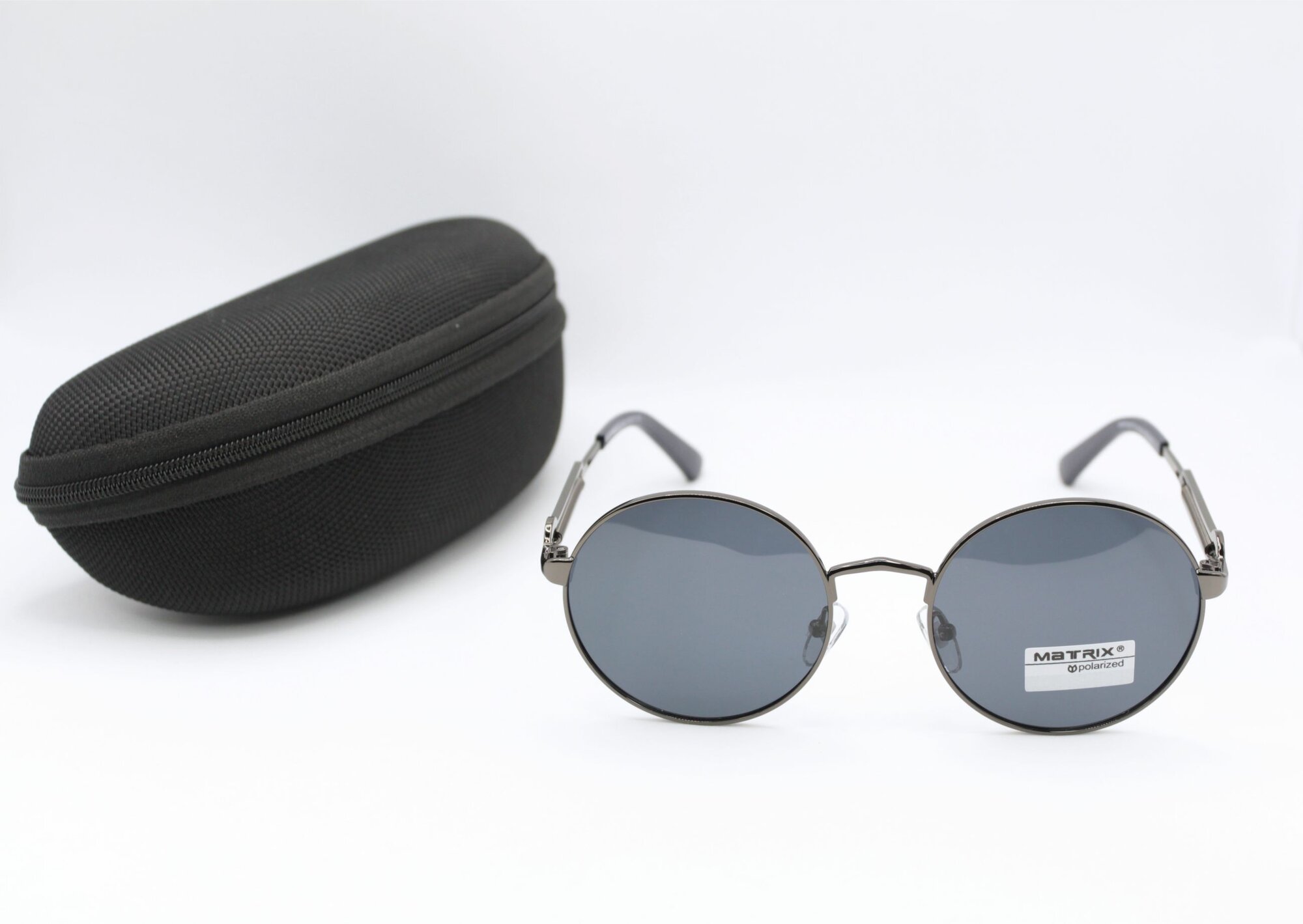 Очки солнцезащитные MATRIX (МТ8620 C97-P55) круглые, тишейды, стимпанк, оправа и дужки серый металл, линзы градиент: чернильно-черный в серый, поляризация, UV-защита cat.3, на дужках вставки с пружинками + мягкий чехол +жесткий футляр и салфетка в подарок