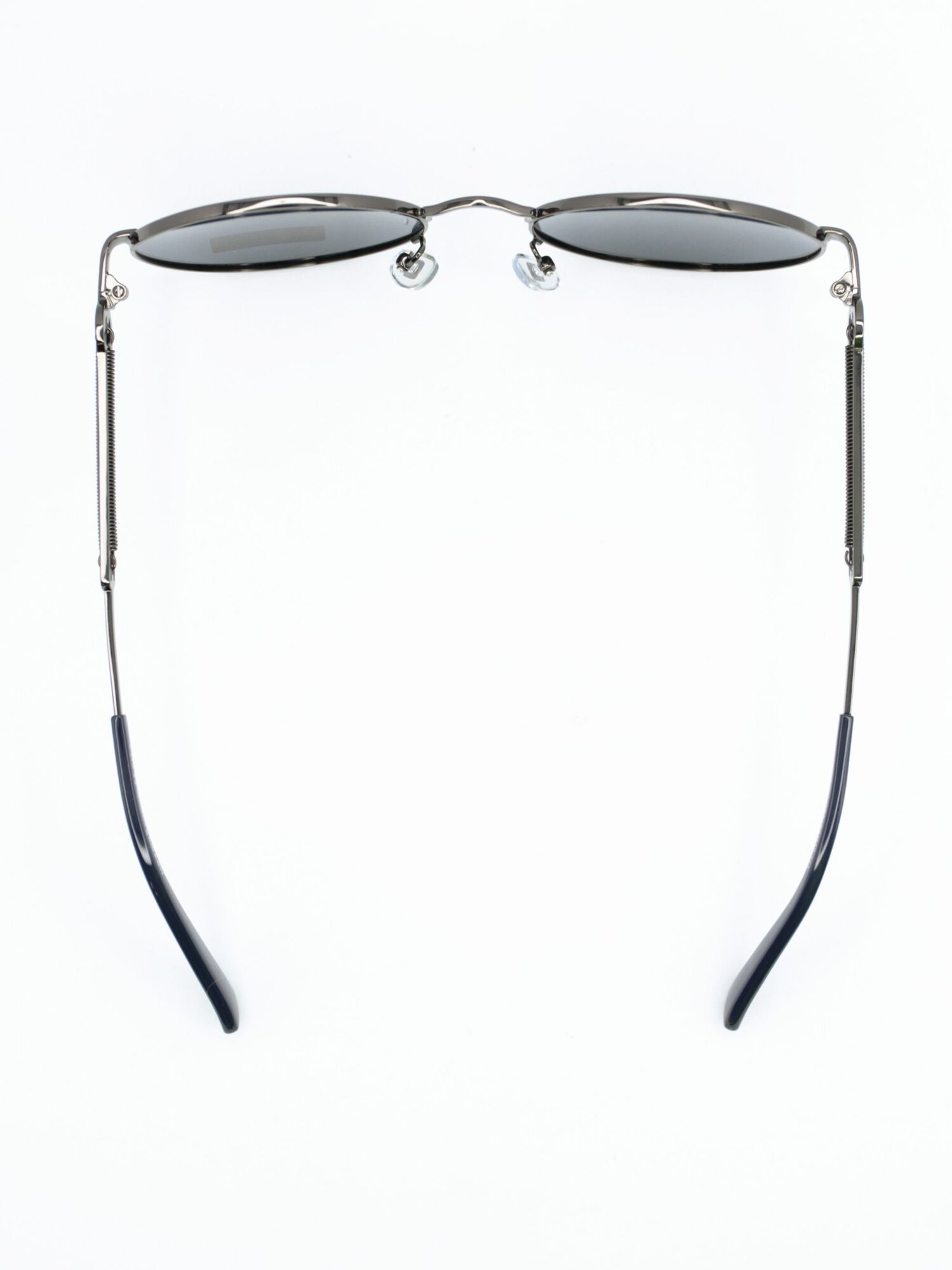 Очки солнцезащитные MATRIX (МТ8620 C2-182) круглые, тишейды, стимпанк, оправа и дужки глянцевый темно-серый металл, линзы серо-синие, поляризация, UV-защита cat.3, на дужках вставки с пружинками + мягкий чехол + футляр и салфетка в подарок