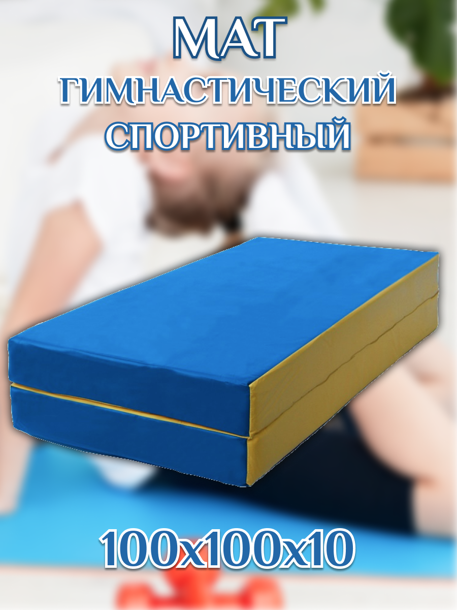 Мат гимнастический КМС 3 (100 х 100 х 10) складной сине/жёлтый .