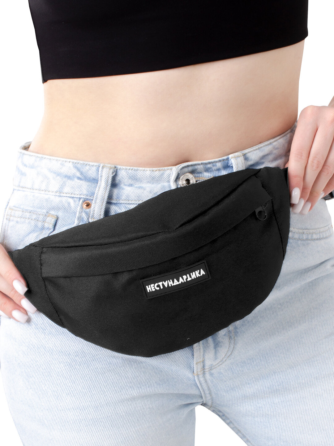 Купить Сумка поясная НЕСТАНДАРТИКА, фактура гладкая, черный