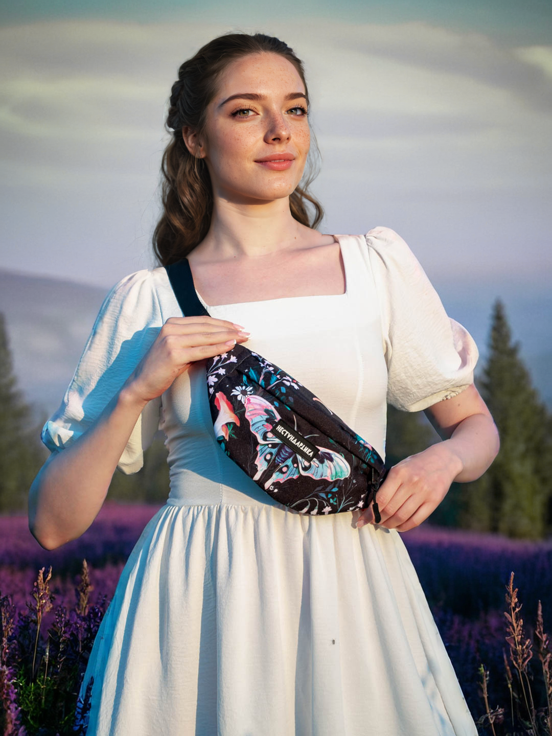 Сумка через плечо на пояс Лунный мотылек