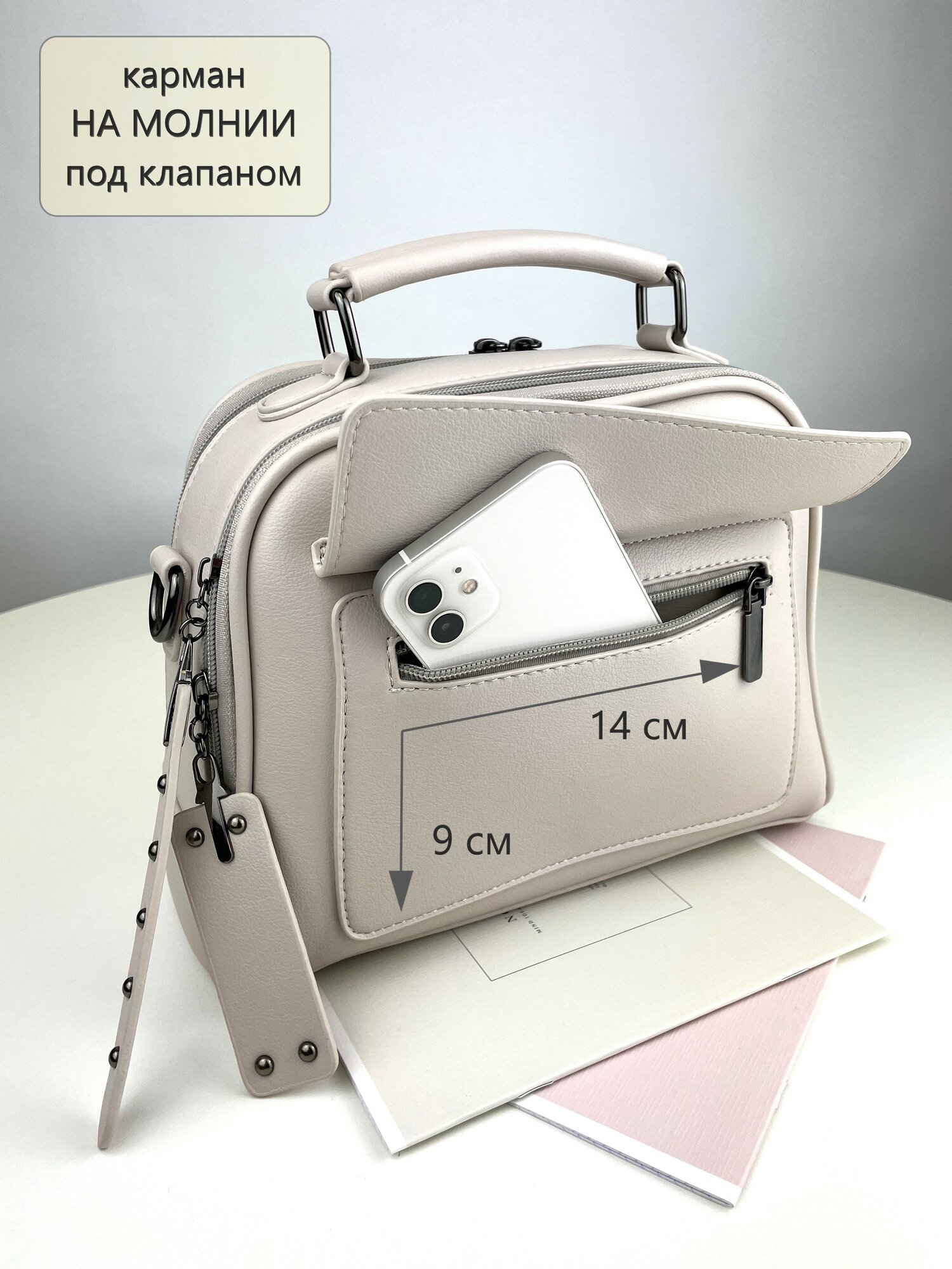 Сумка женская на плечо сундучок 2 ремешка кросс-боди Borsika, бежевая