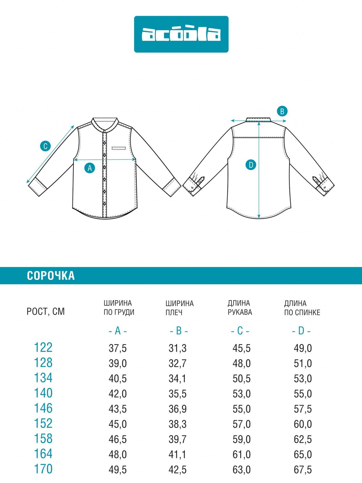 Рубашка ACOOLA Okomir голубой для мальчиков 170 размер