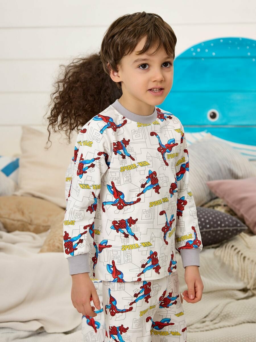 Пижама Fonuters для мальчиков, брюки, лонгслив с манжетами, Хлопок, Человек Паук, размер 110-120, белый, красный