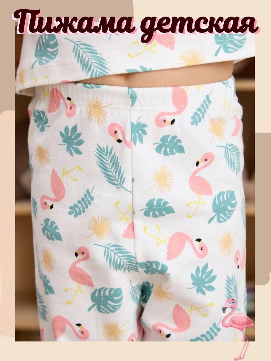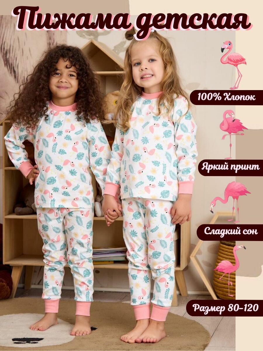 Пижама Fonuters для девочек , брюки, лонгслив с манжетами, Хлопок, Фламинго, размер 80-90
