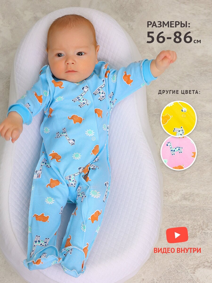 Комбинезон YOULALA, закрытая стопа, размер 62, голубой/желтый