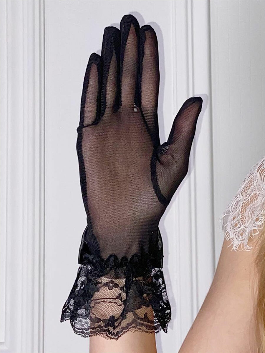 Перчатки/кружевные с атласным бантом