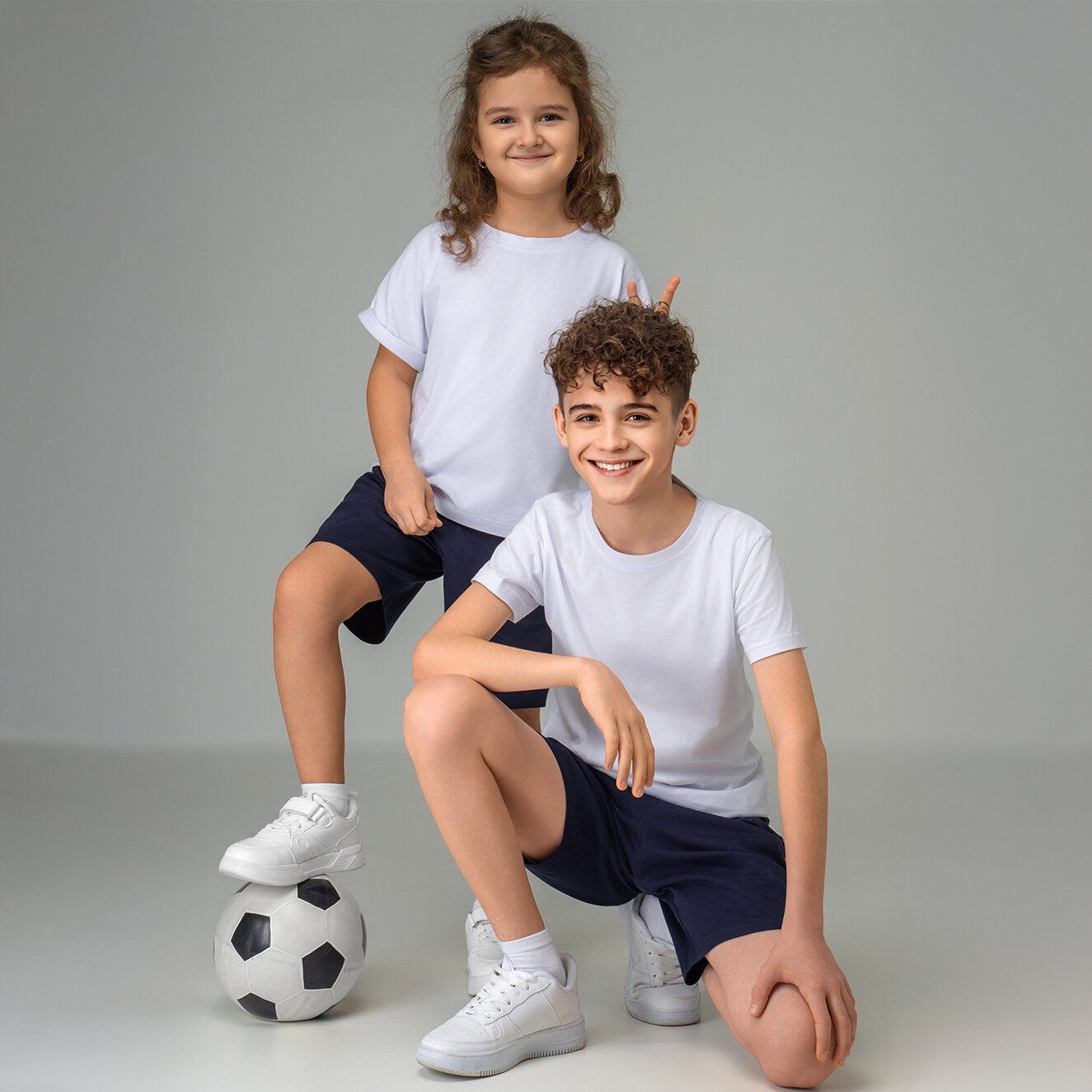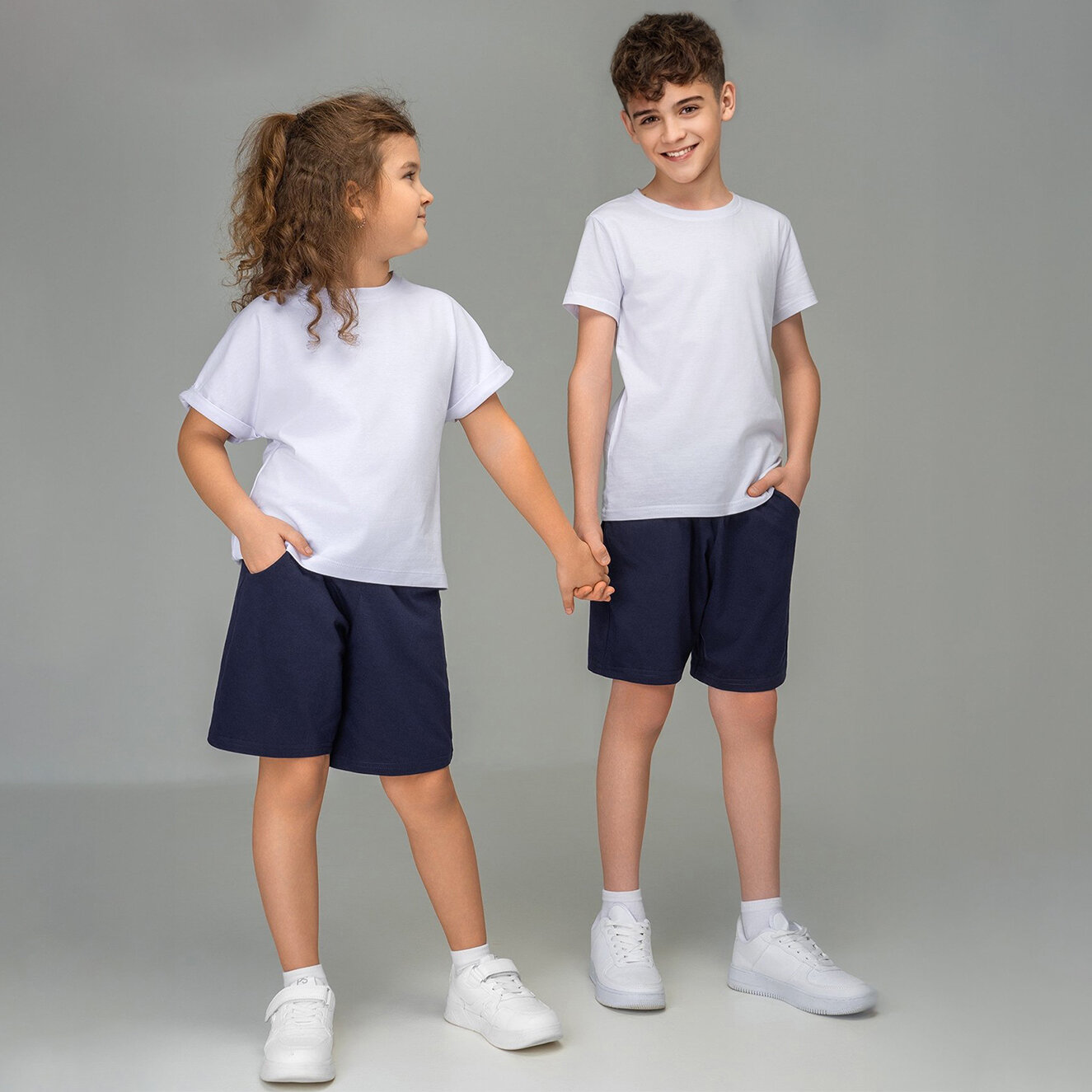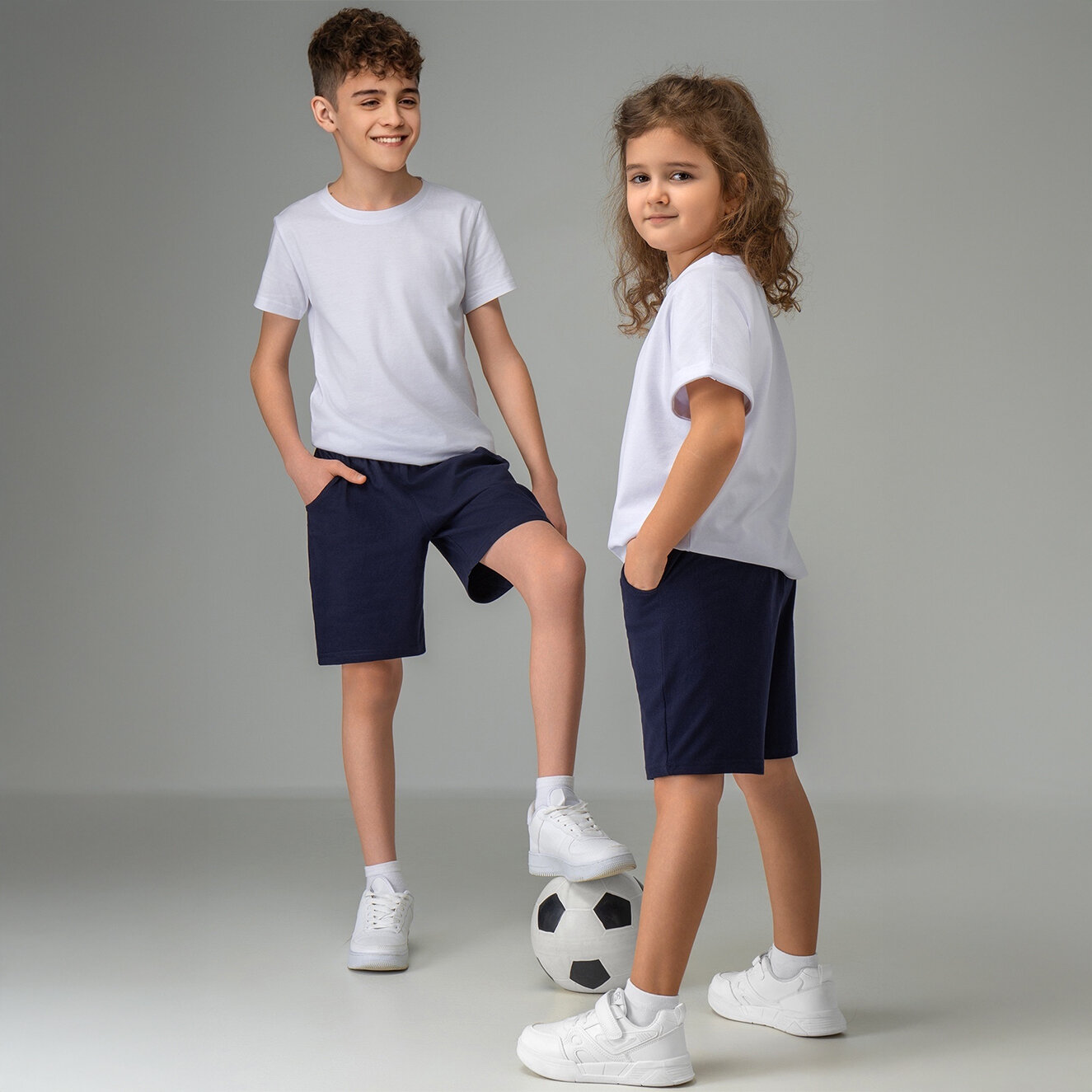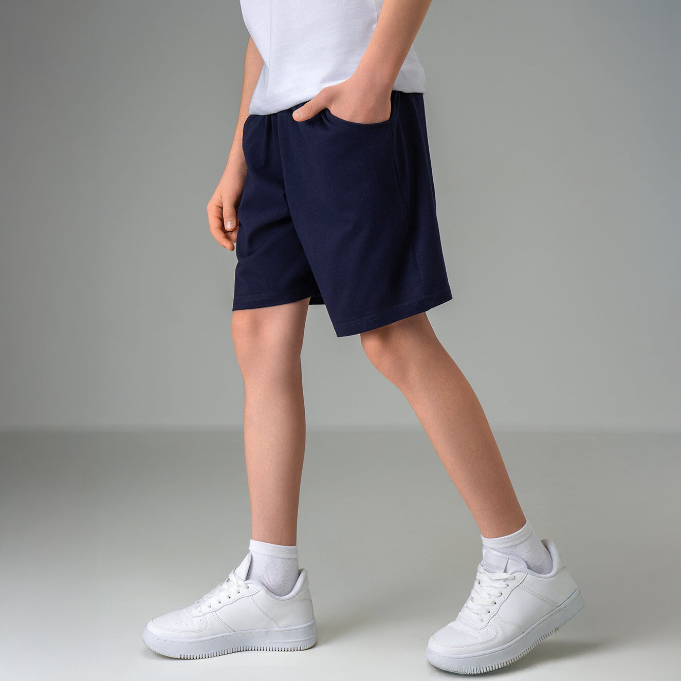 Однотонные шорты для детей и подростков спортивные хлопок HappyFox, HF7701 размер 158, цвет т.синий