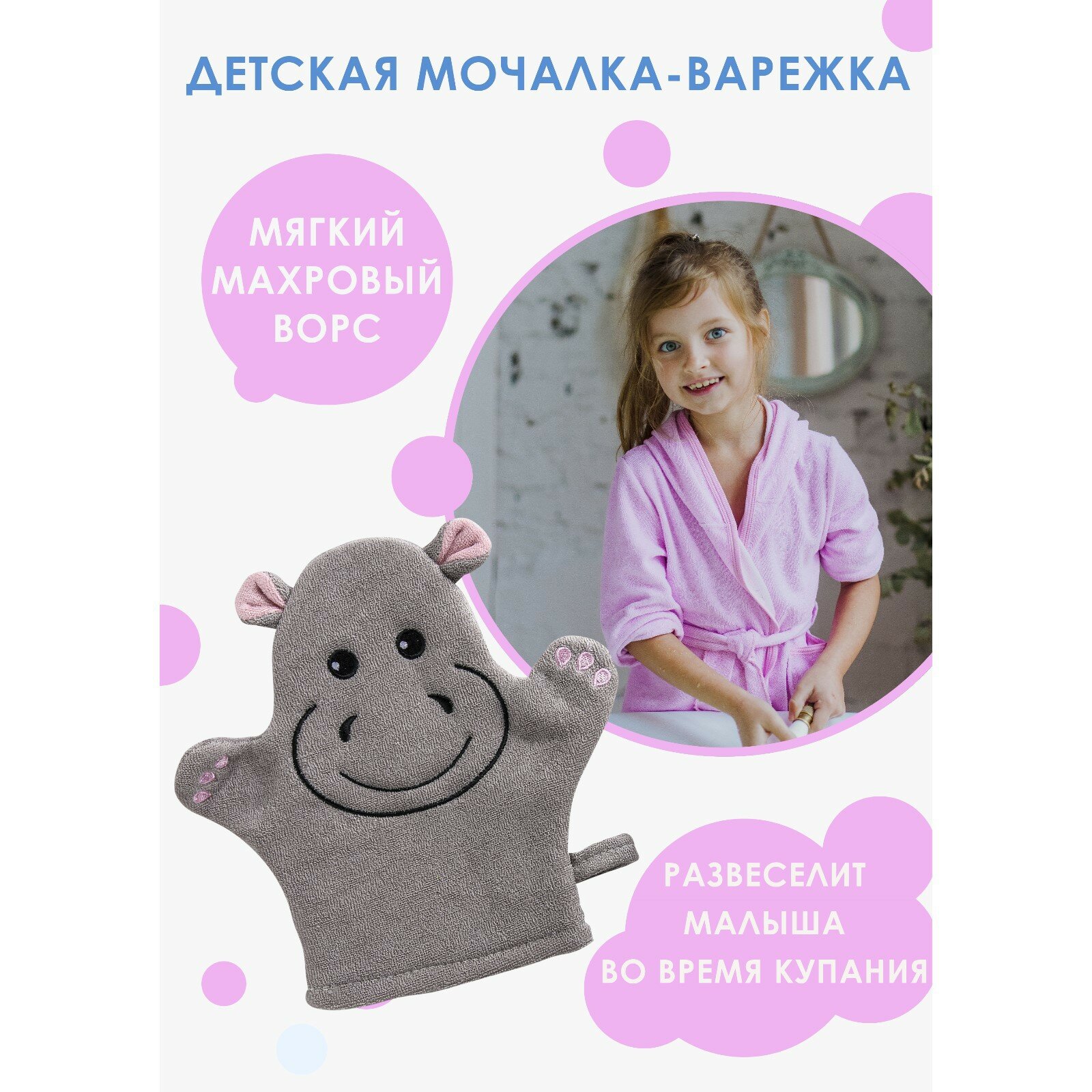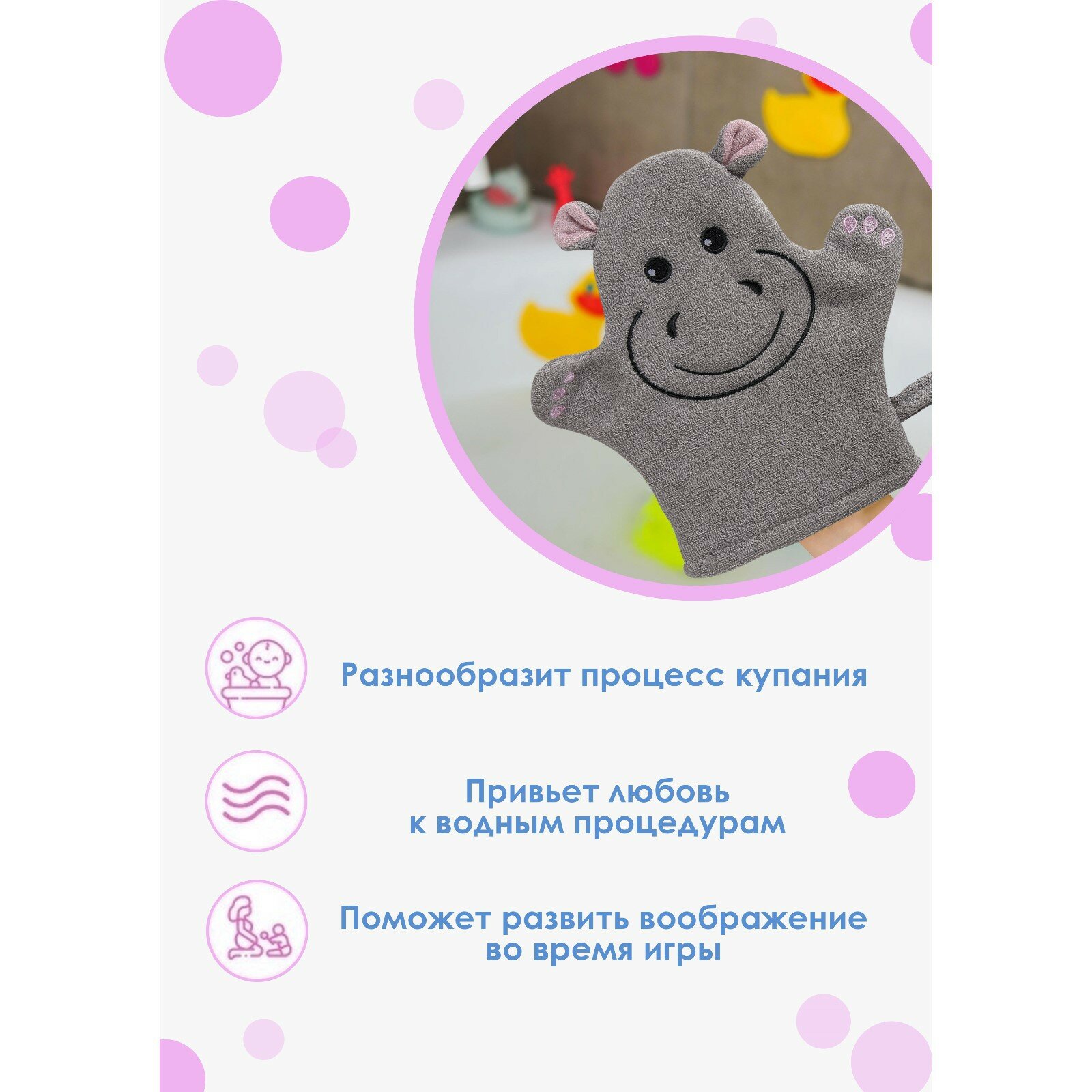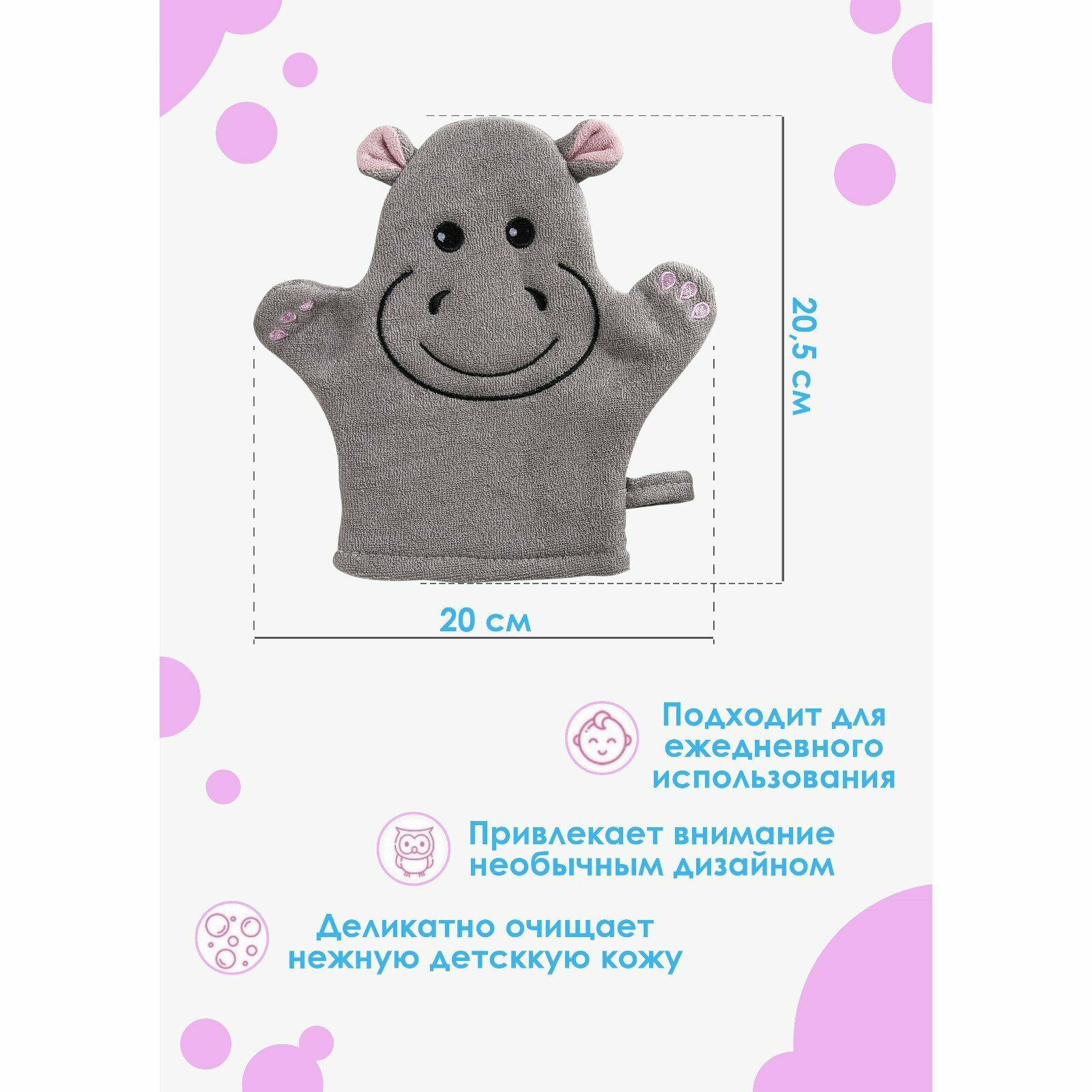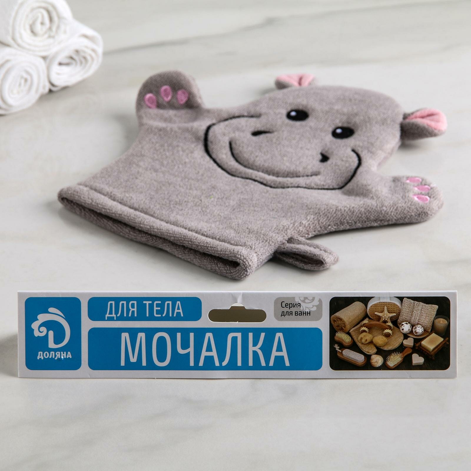 Мочалка варежка для тела детская Доляна «Бегемотик» детская, для купания интересное: