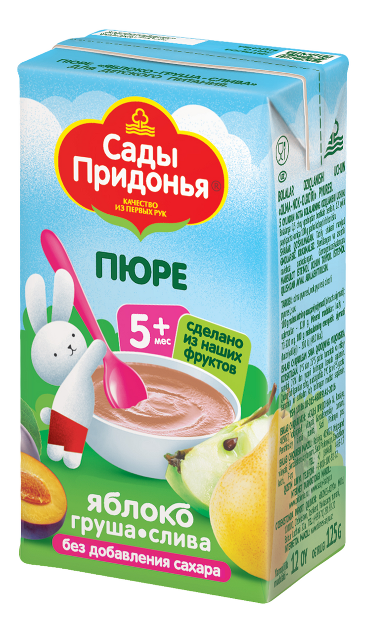 Пюре фруктовое сады придонья Яблоко, груша, слива, с 5 месяцев, 125г интересное: