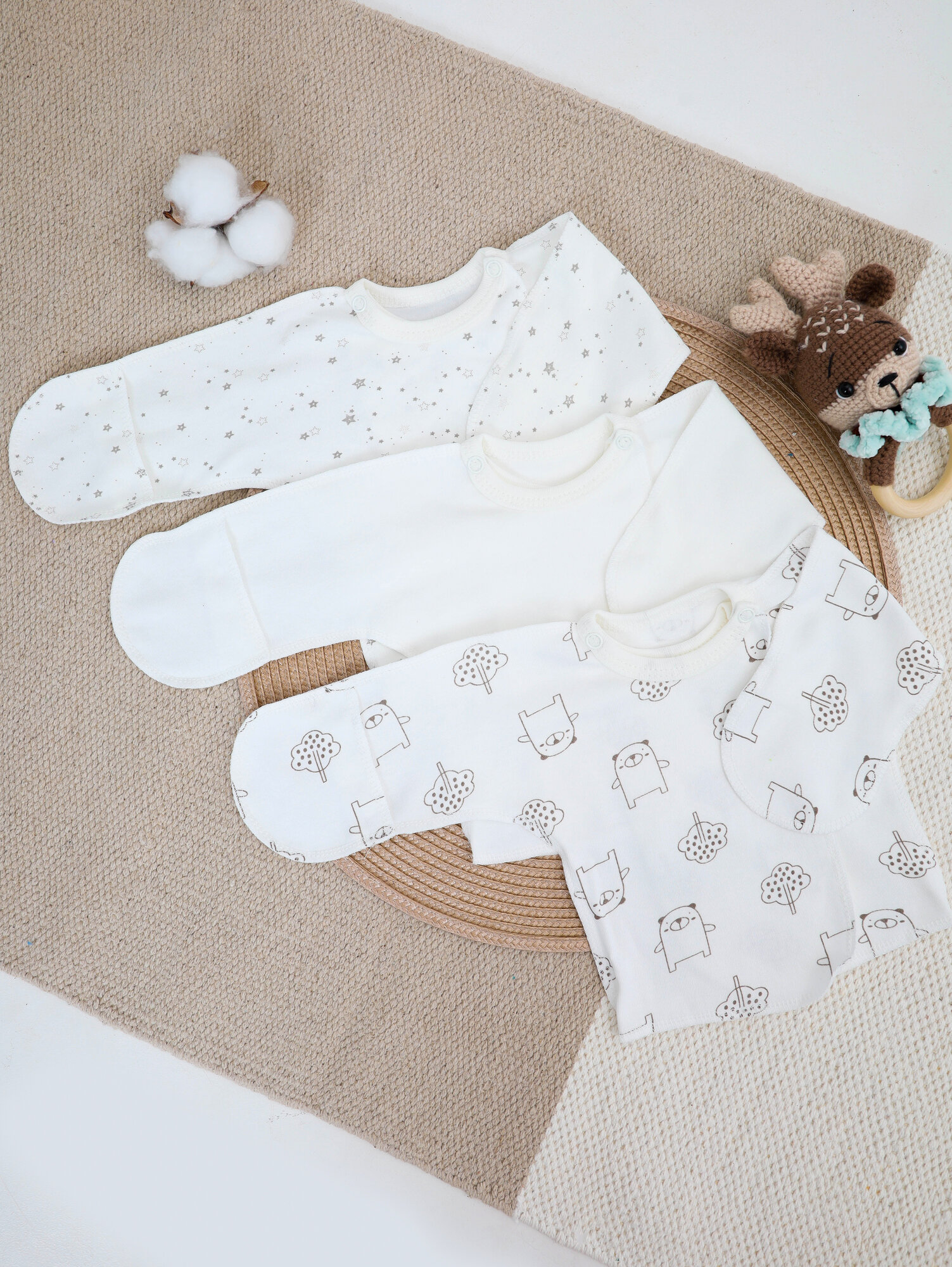 Распашонка , комплект из 3 шт., размер 62, бежевый интересное: