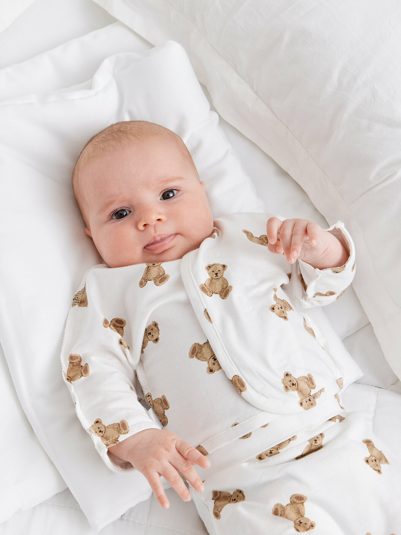 90123, Комплект детских рубашек Happy Baby, для новорожденных, свободный силуэт, 2 шт., белая с мишками и коричневая, рост 50-56