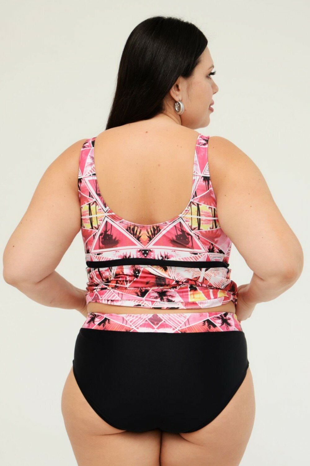 Купальник женский раздельный в рубчик больших размеров MollenaLayers, с высокой посадкой, размер 48, черный
